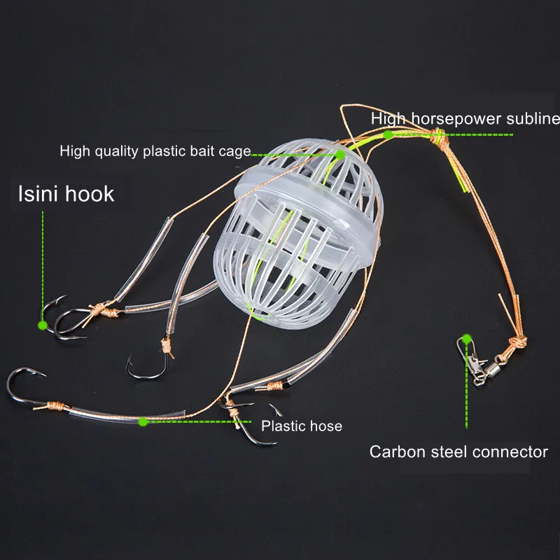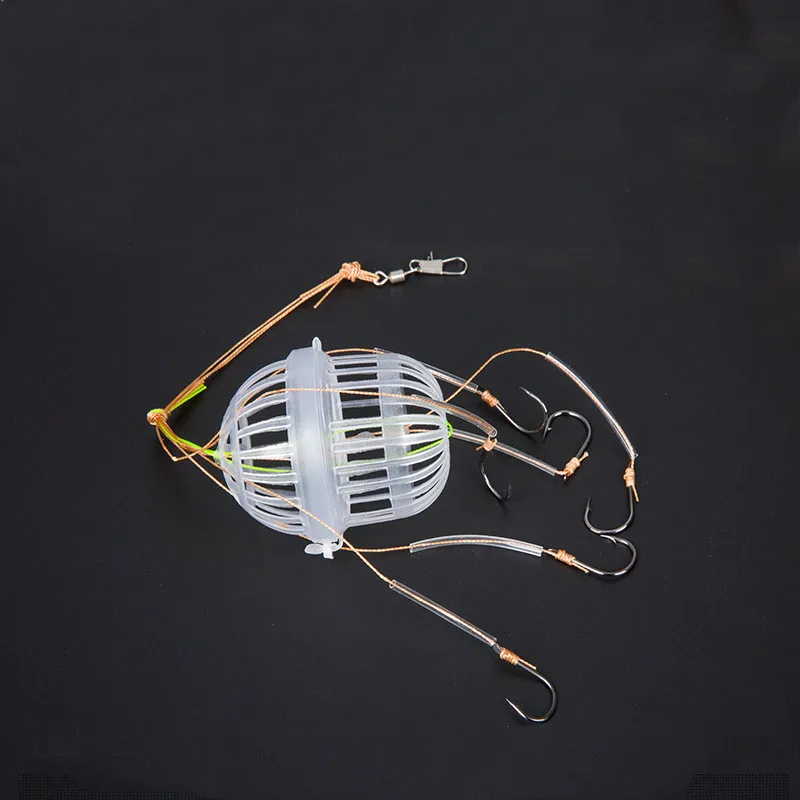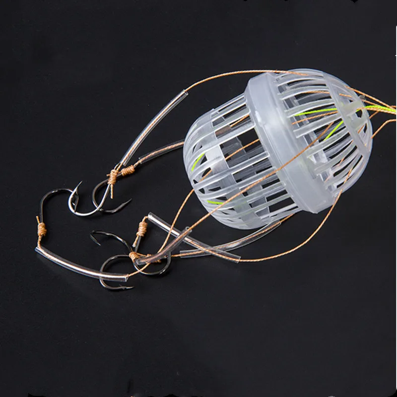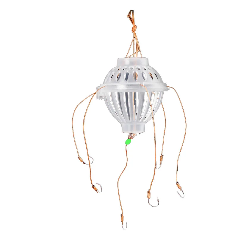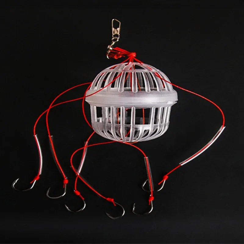 Anzuelos de pesca de plástico de acero al carbono, jaula de cebos de explosión, caja de mar, anzuelo de monstruos con seis fuertes herramientas de aparejos esféricos de carpa, 1Pc