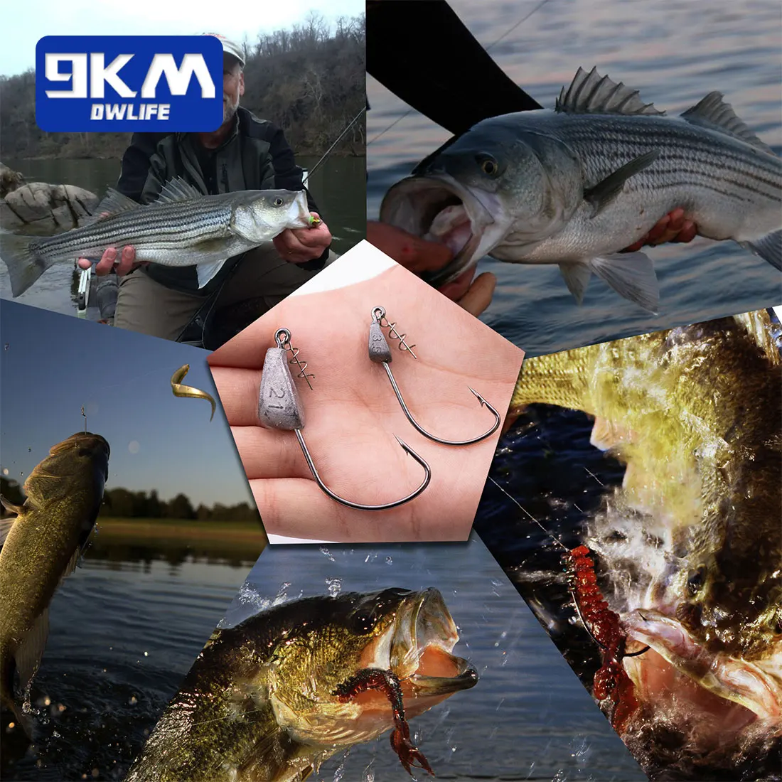 [High quality]9KM weighted swimbait hooks are made of high carbon steel and have a built-in weight on the head. It can be used with plastic soft swim bait, which has the advantages of sinking quickly and bouncing on the bottom.