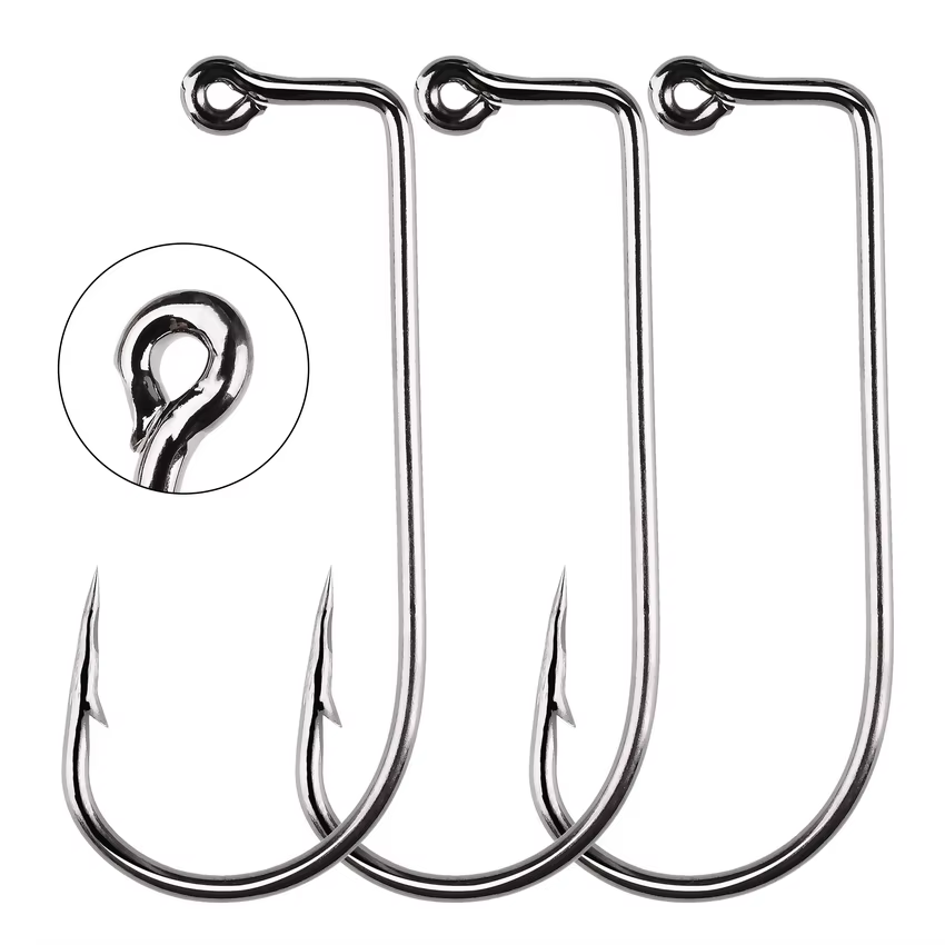 Anzuelos de pesca con púas 6 #-100 #, conjunto de anzuelos de un solo círculo, accesorios de pesca con mosca, anzuelo de acero al carbono, 5/0 piezas