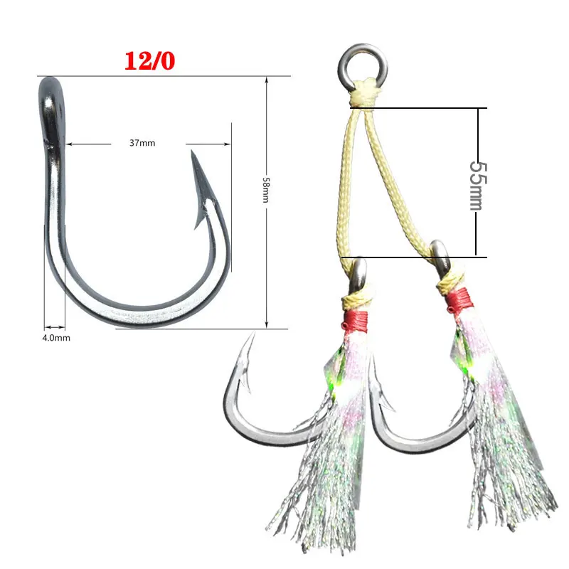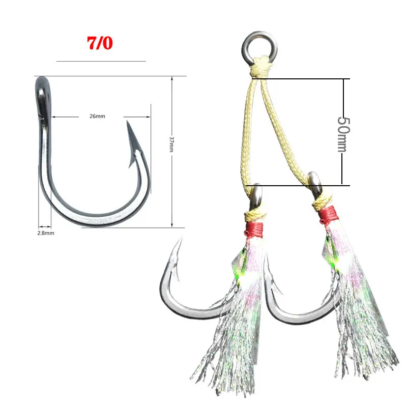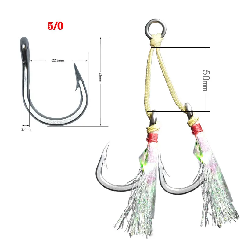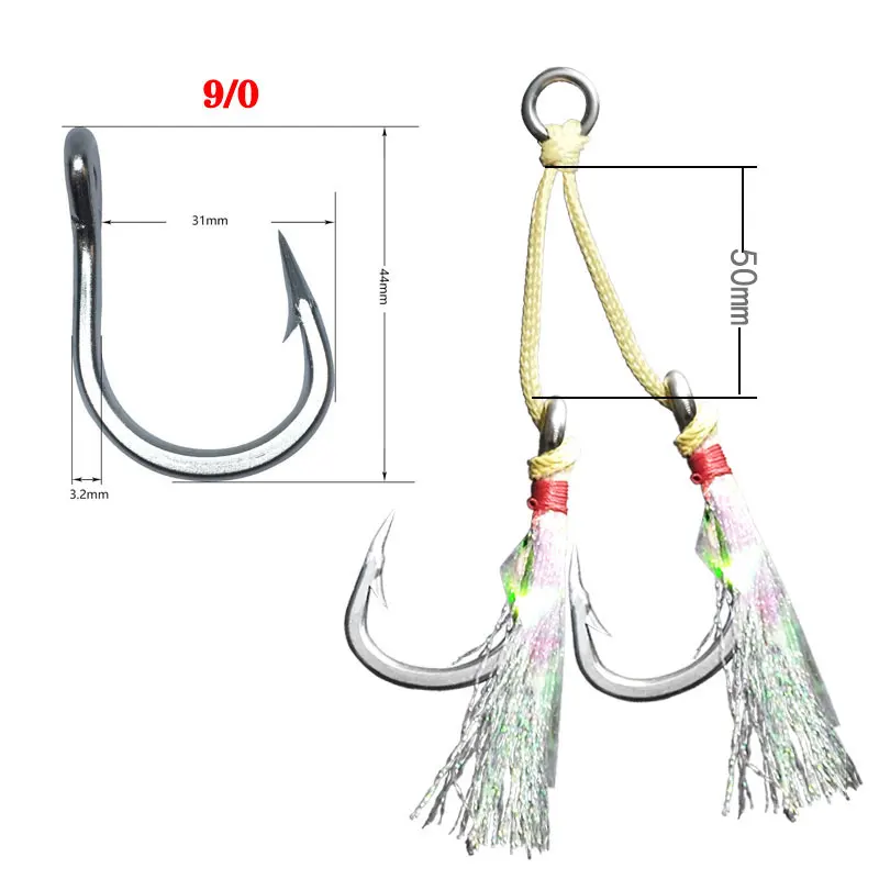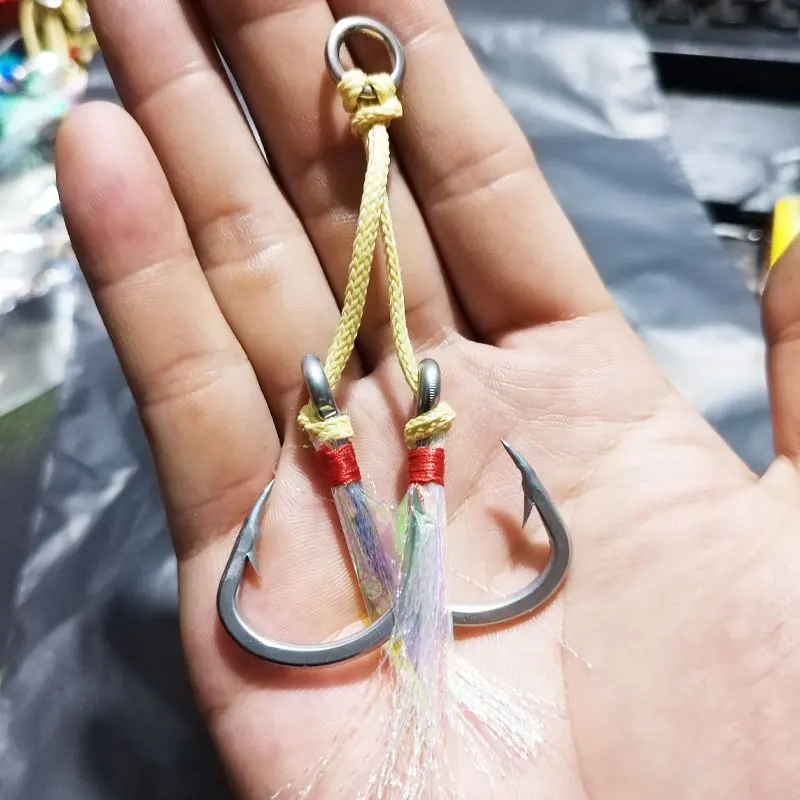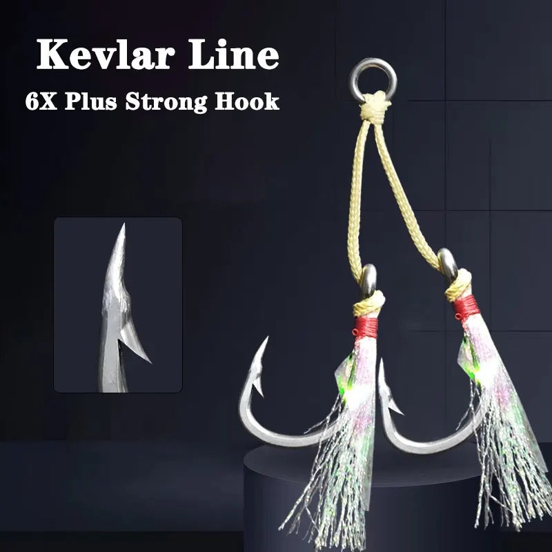 Anzuelos de pesca con púas dobles, línea Kevlar 6X Plus, fuerte fuerza, lento/rápido, anzuelos de asistencia, 10 pares