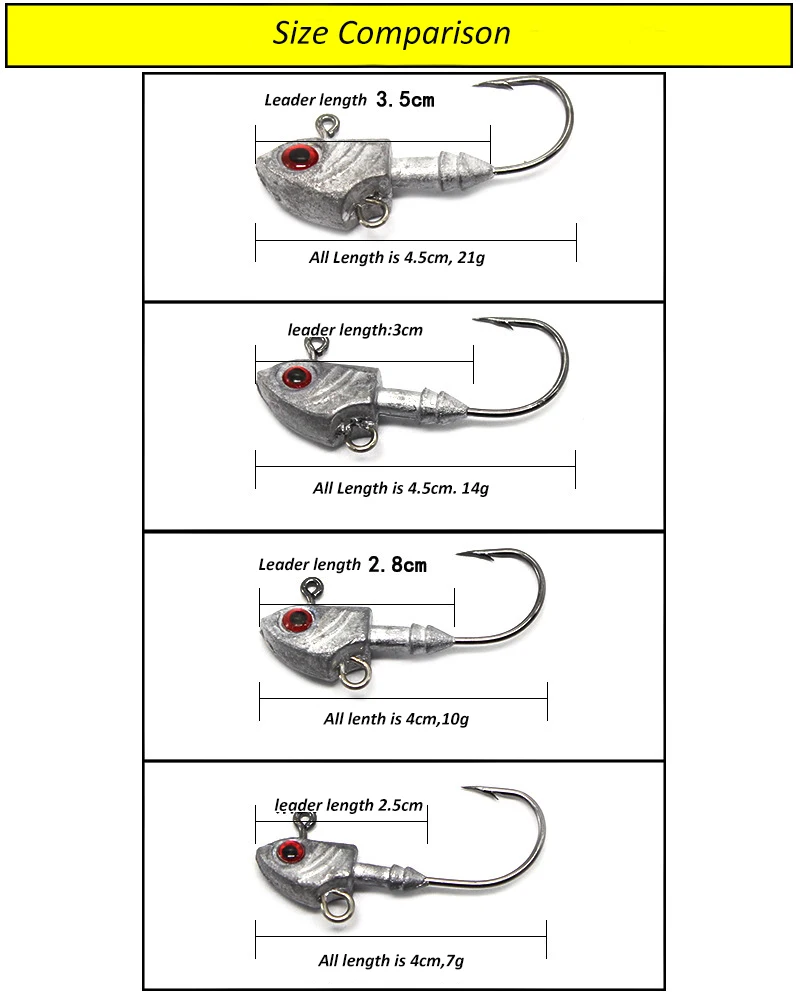 Anzuelos de pesca con púas, señuelo de gusano, cabeza de plantilla suave, cebo Artificial, aparejos de pesca M165, 7g, 10g, 14g, 20g, 5 unids/lote por bolsa