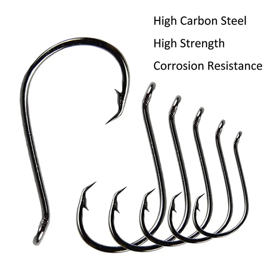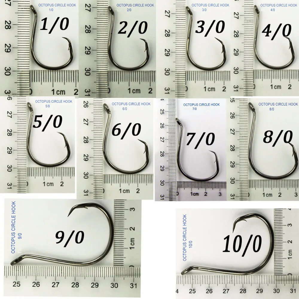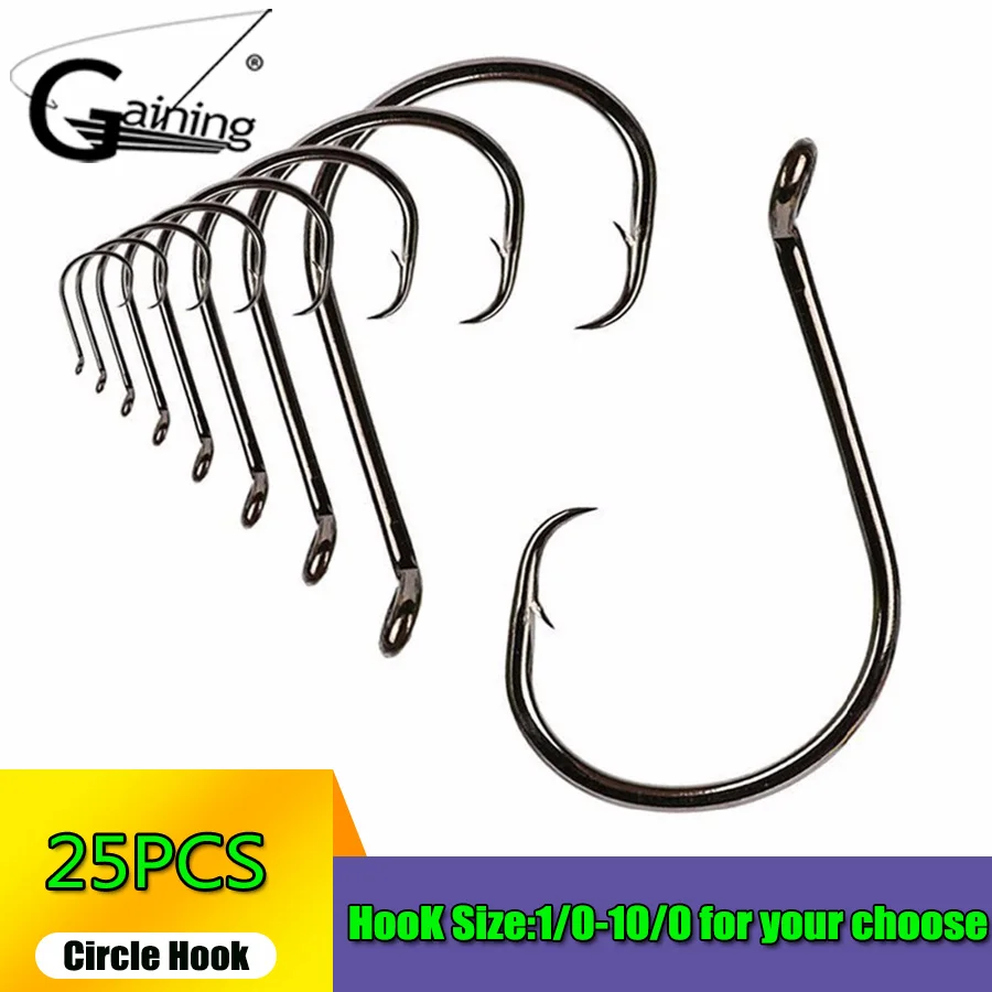 25 uds 7385 anzuelos de pesca serie pulpo anzuelo de acero al carbono de un solo círculo 2x anzuelos de carpa con púas fuertes 1/0-10/0