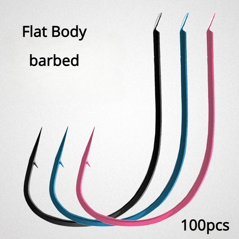 Anzuelos de pesca de punta afilada, anzuelos de pesca delgados con púas plateadas, Material de pesca de carpa, accesorios azules, 100 piezas
