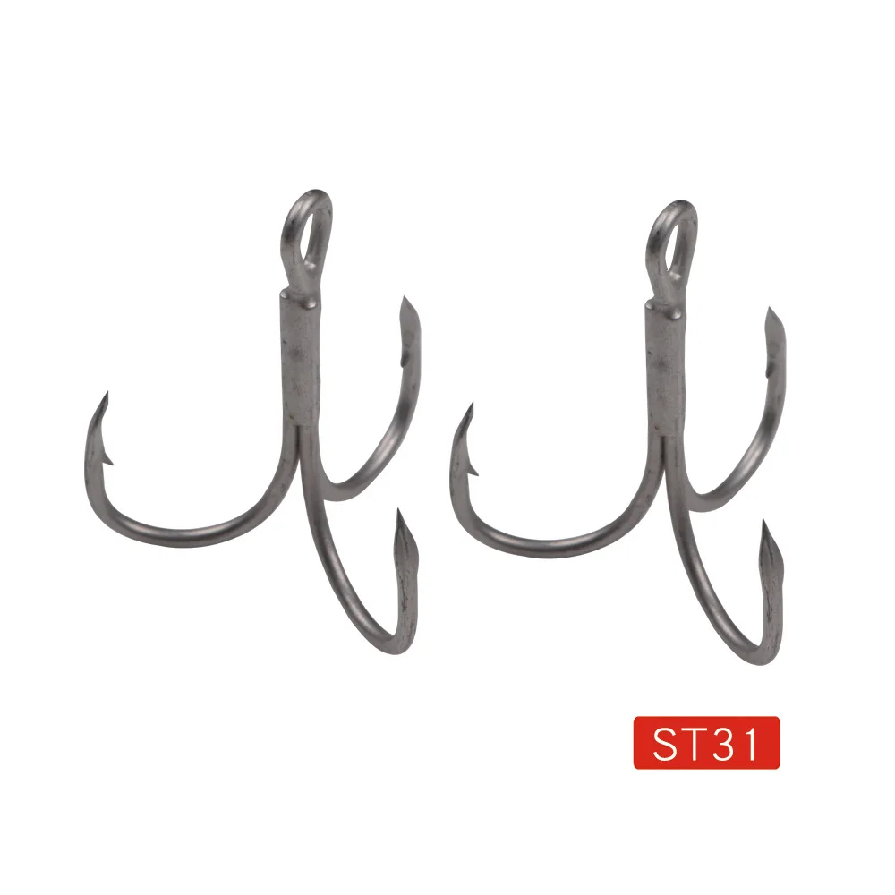 Anzuelos de pesca ST31, herramientas de aparejos de pesca de acero alto en carbono, superafilados, con ranura en sangre Aukin 1/0 2 #4 #, anzuelos triples, 5 unids/lote