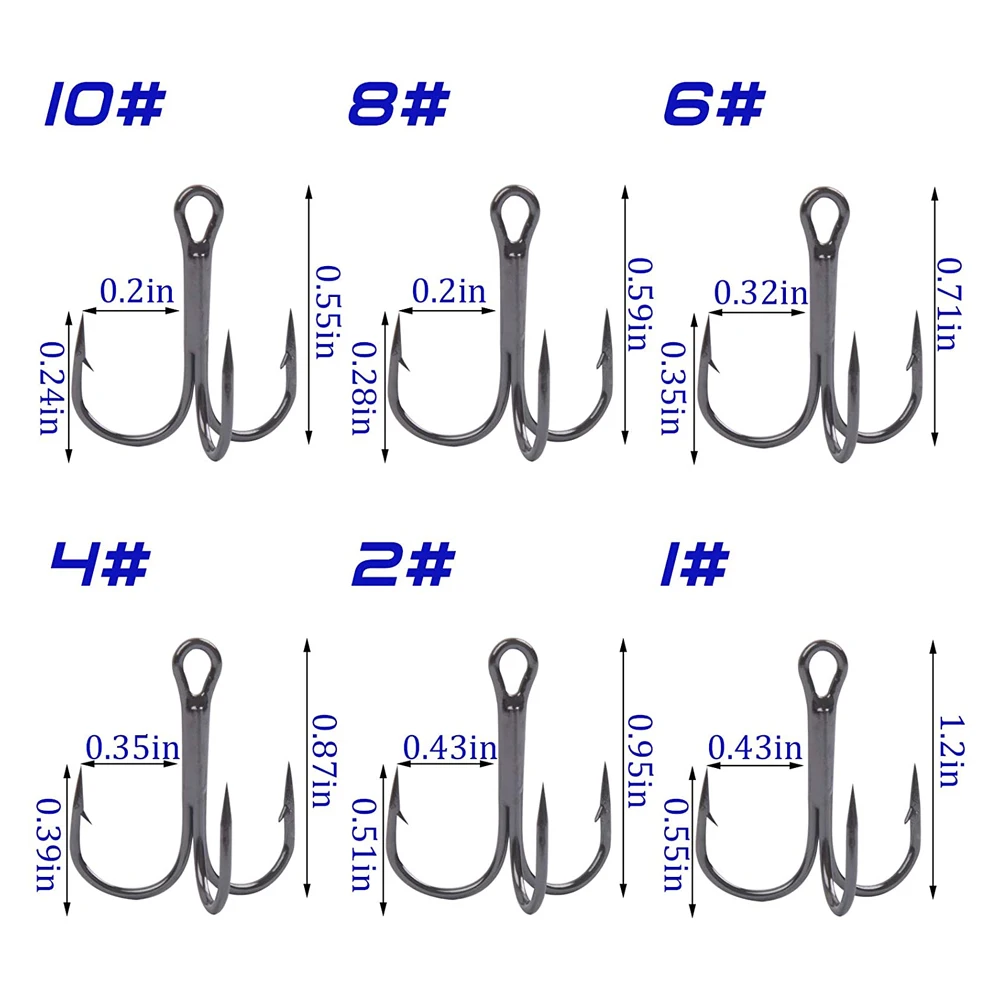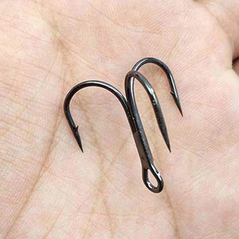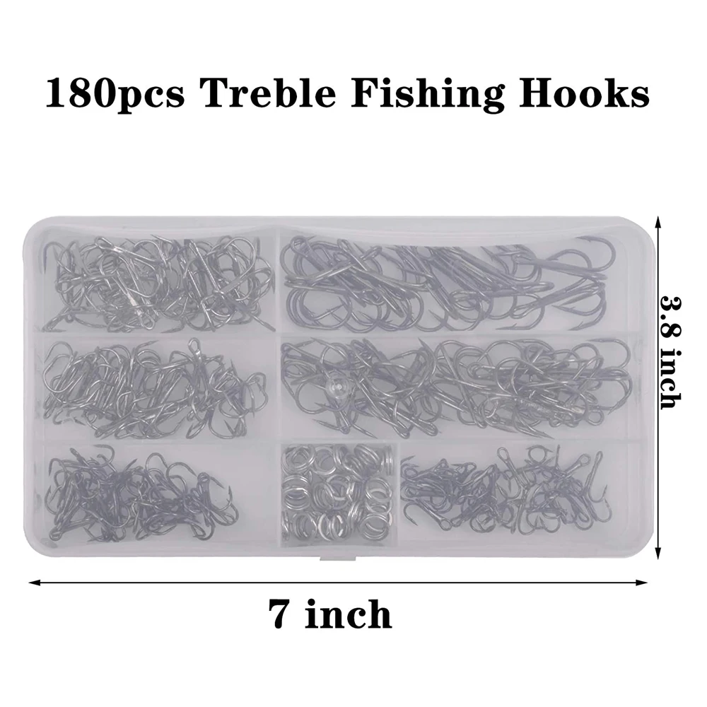 180 unids/caja de anzuelos de pesca triples, anzuelo triple de curva redonda afilada, anzuelos de púas con juego de anillos divididos para aparejos de pesca de lubina