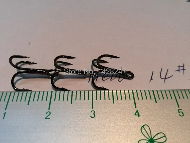 Nombre anzuelos de pesca triples de alta calidad Material: poste de alto carbono tamaño: 14 # color: níquel negro