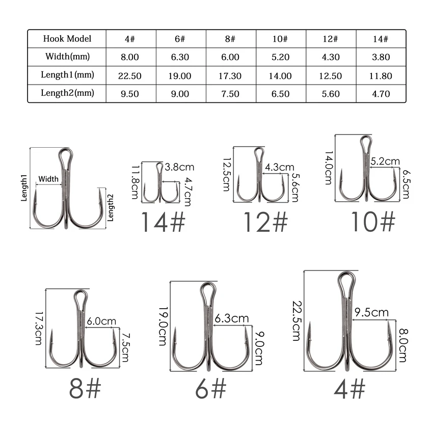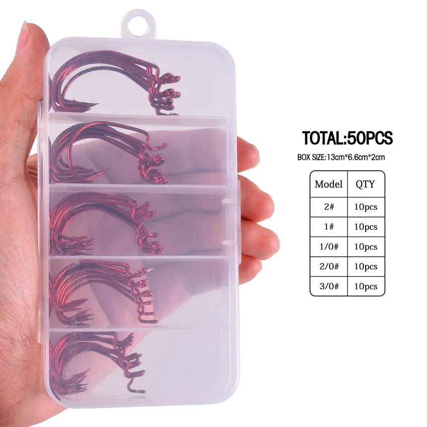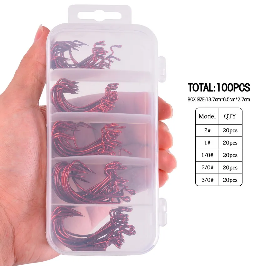 Anzuelos de pesca triples en caja, anzuelos de púas de acero con alto contenido de carbono, aparejos de pesca, negro/plata/rojo/té, 120/50 unidades por lote