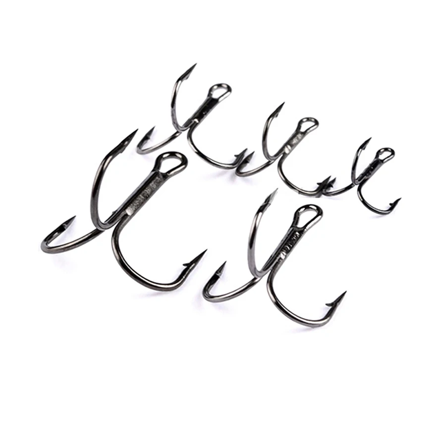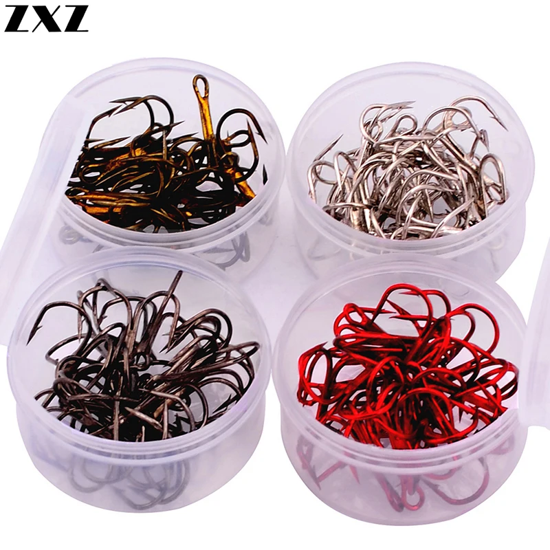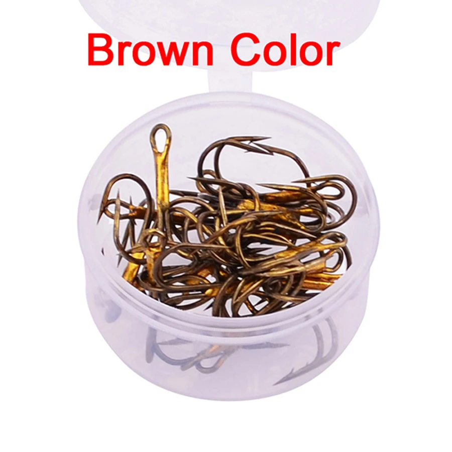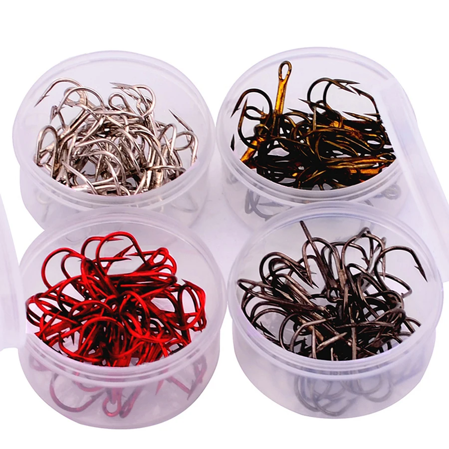 Anzuelos de pesca triples de níquel, anzuelos de acero de alto carbono con púas, anzuelos triples súper afilados, accesorios de aparejos de mar con caja, 20 Uds.