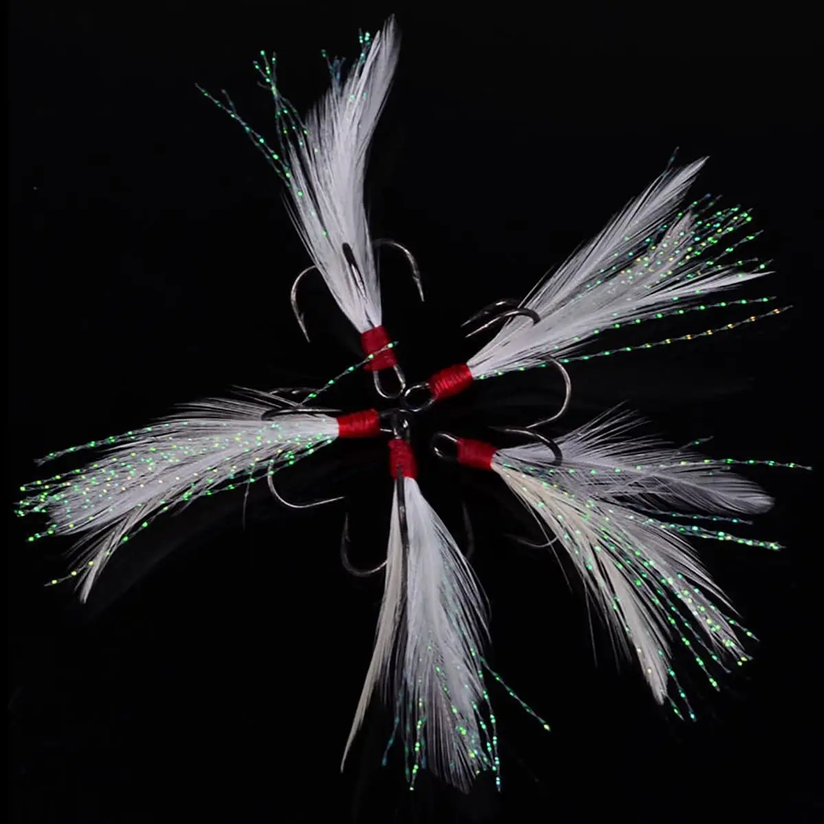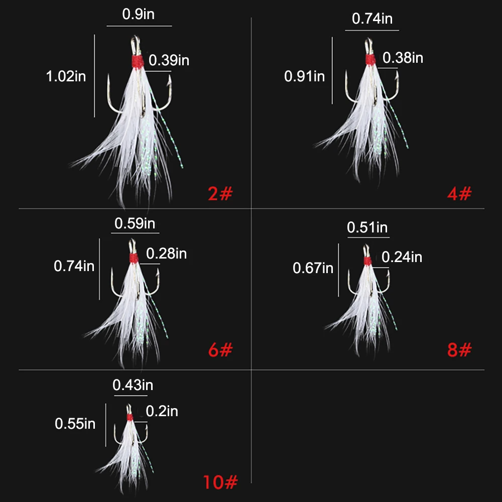 10 ANZUELOS TRIPLES DE DISPONIBLES EN 1 TAMAÑO-10 anzuelos triples negros de 10 piezas con pluma blanca. Tamaño 4 # garantiza que el placer de la pesca continúe