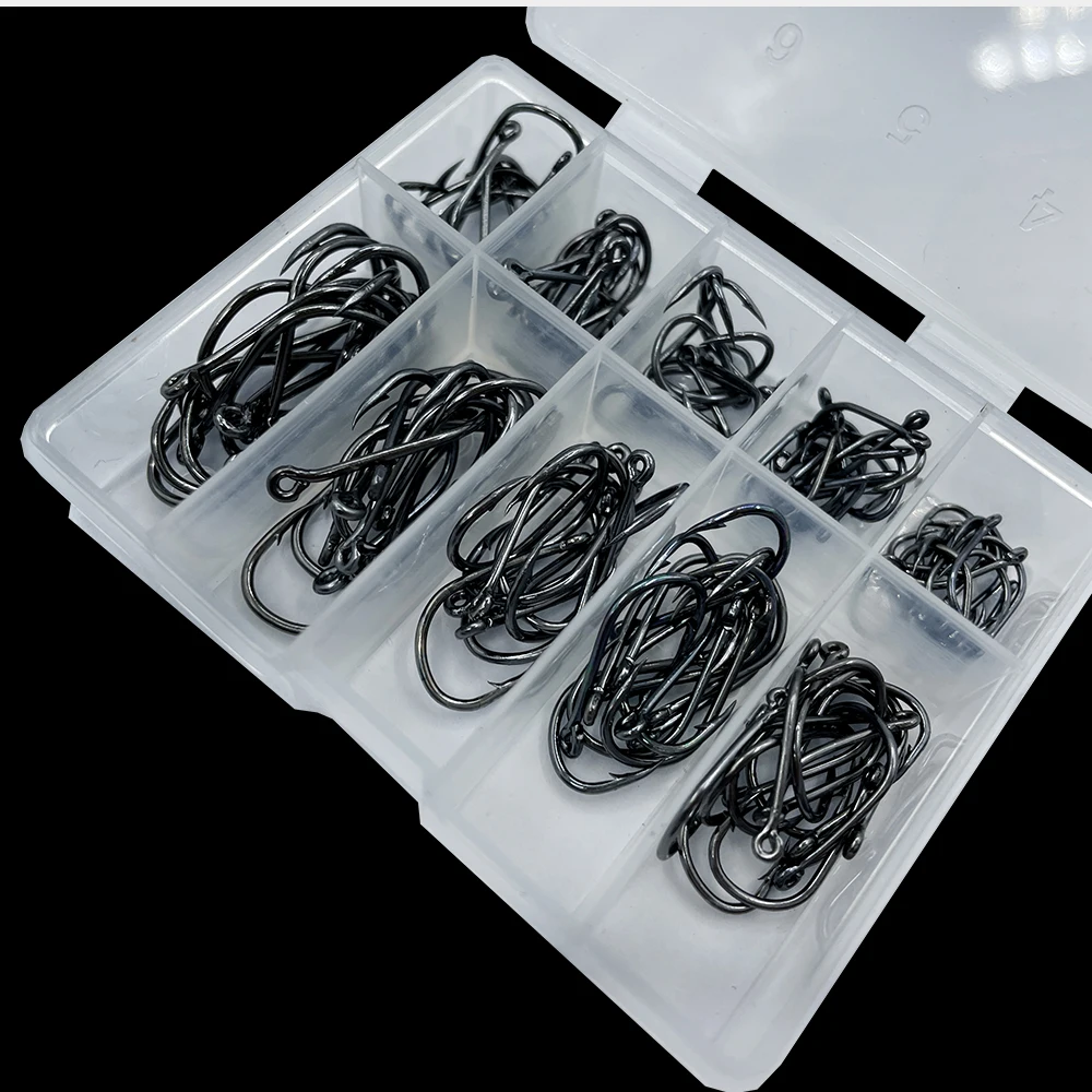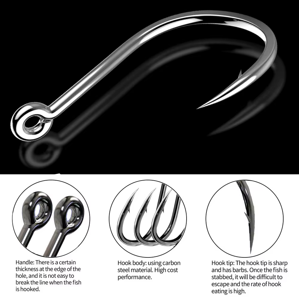 Juego de anzuelos de pesca de acero al carbono de un solo círculo, anzuelo de pesca con mosca, anzuelos de carpa con púas, accesorios para aparejos de mar, 100, 2017