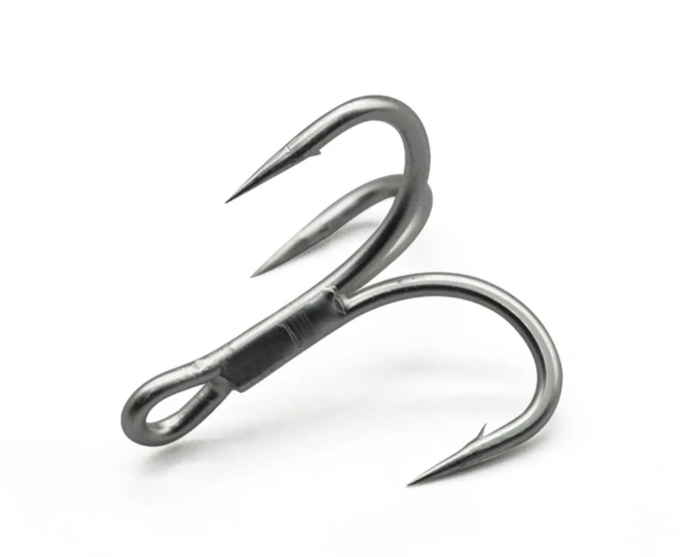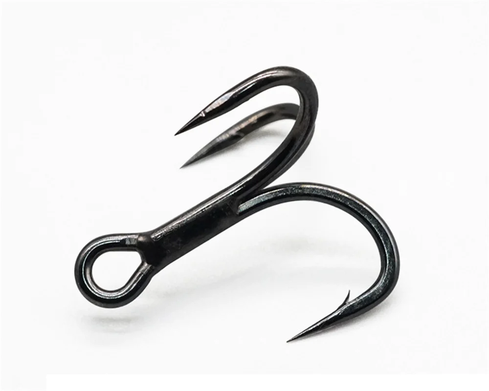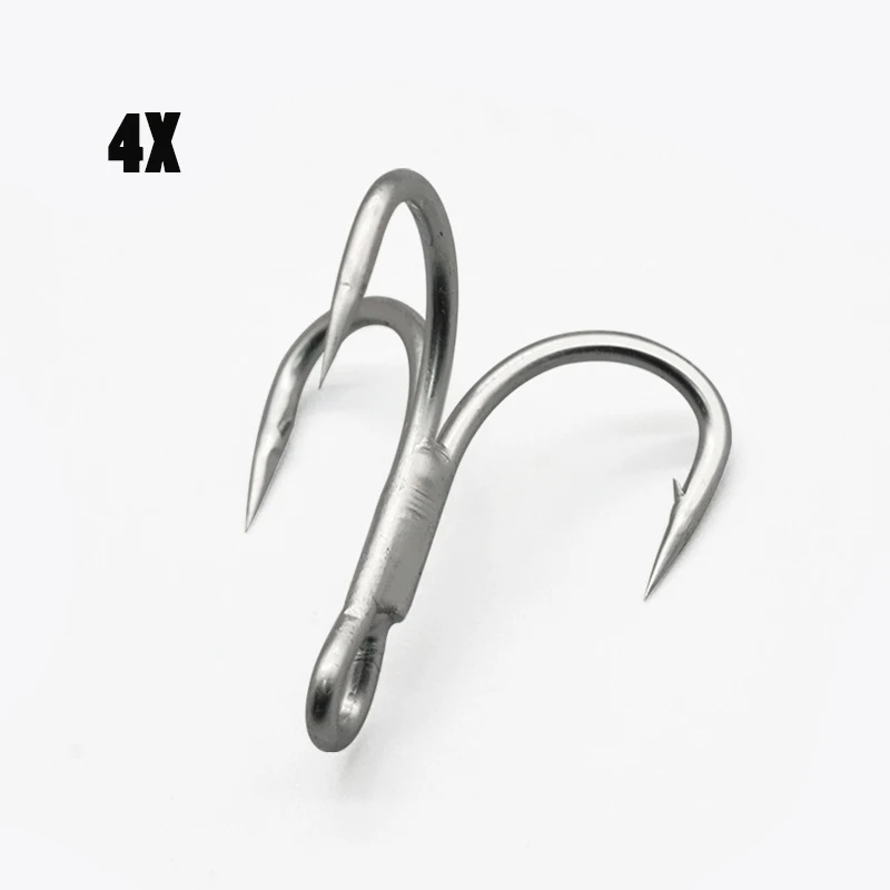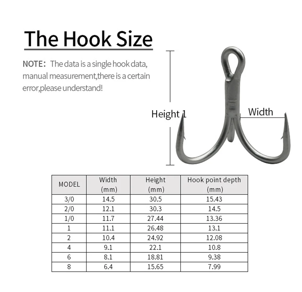 Anzuelos de piezas para pesca en el mar, 4 anzuelos triples fuertes de acero con alto contenido de carbono, níquel blanco y negro, anzuelos afilados con púas, 100