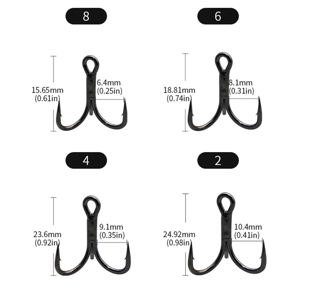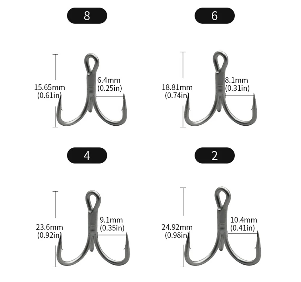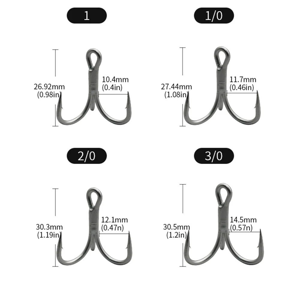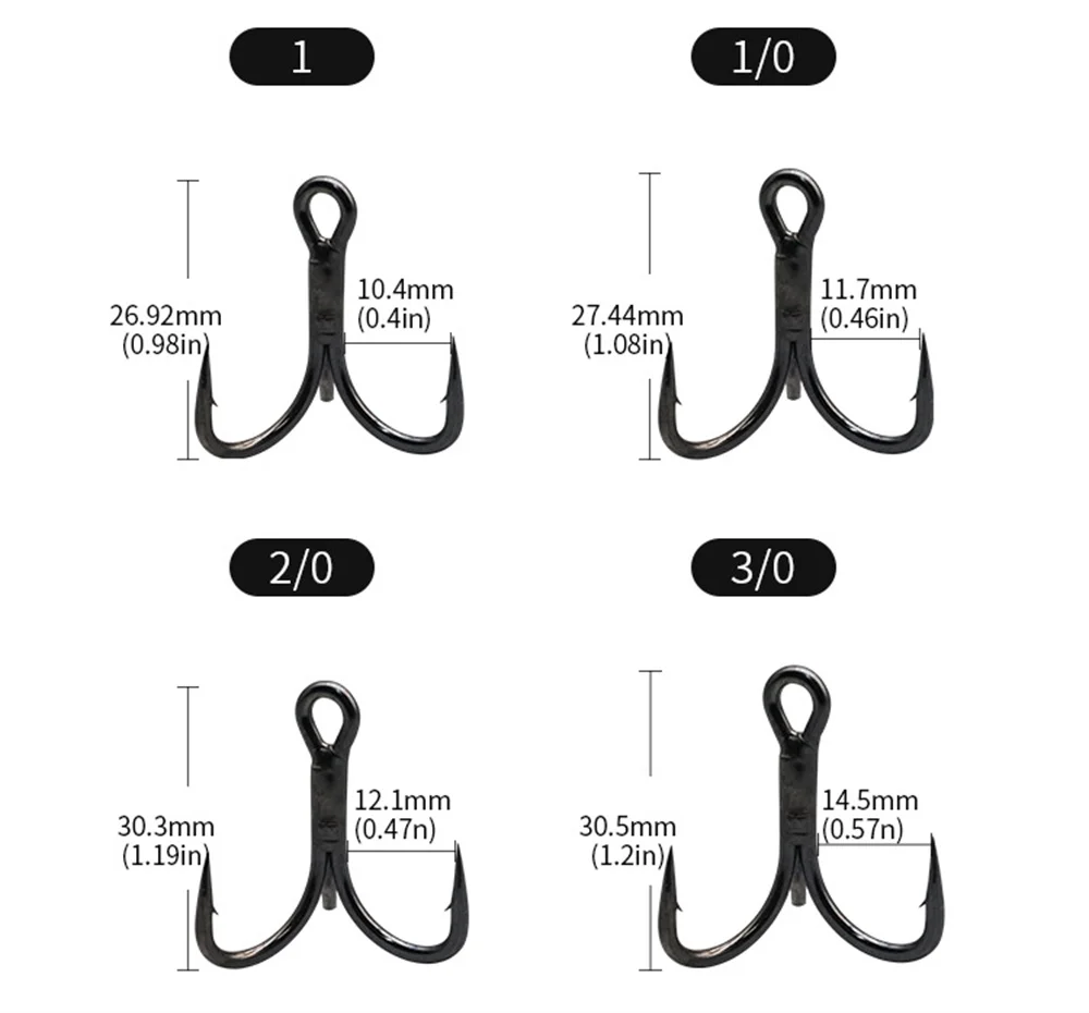 Anzuelos de piezas para pesca en el mar, 4 anzuelos triples fuertes de acero con alto contenido de carbono, níquel blanco y negro, anzuelos afilados con púas, 100