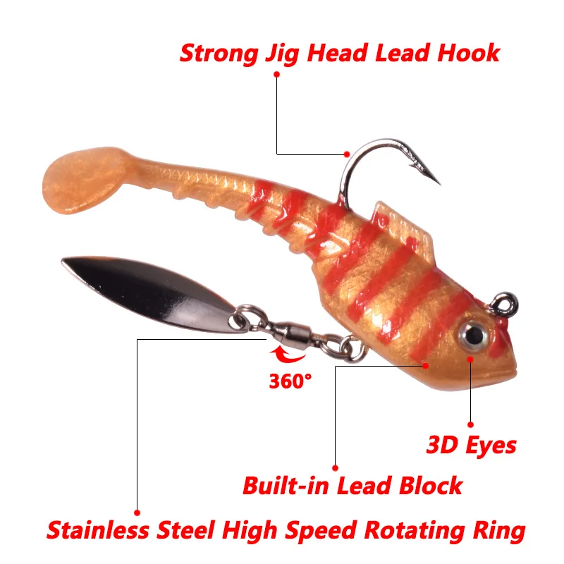 Tipo de señuelo: Señuelo suave con ganchos de plantilla de lentejuelas de rotación