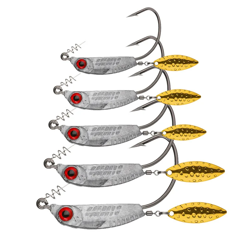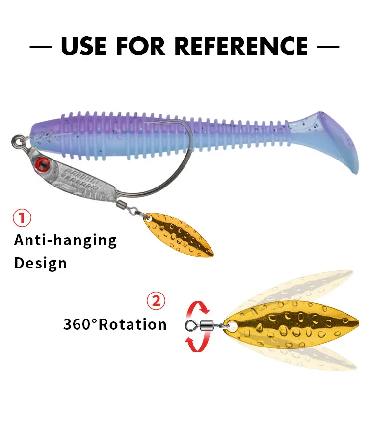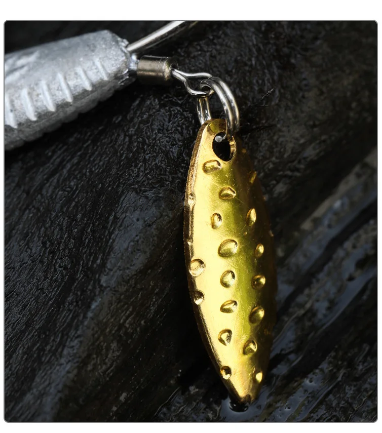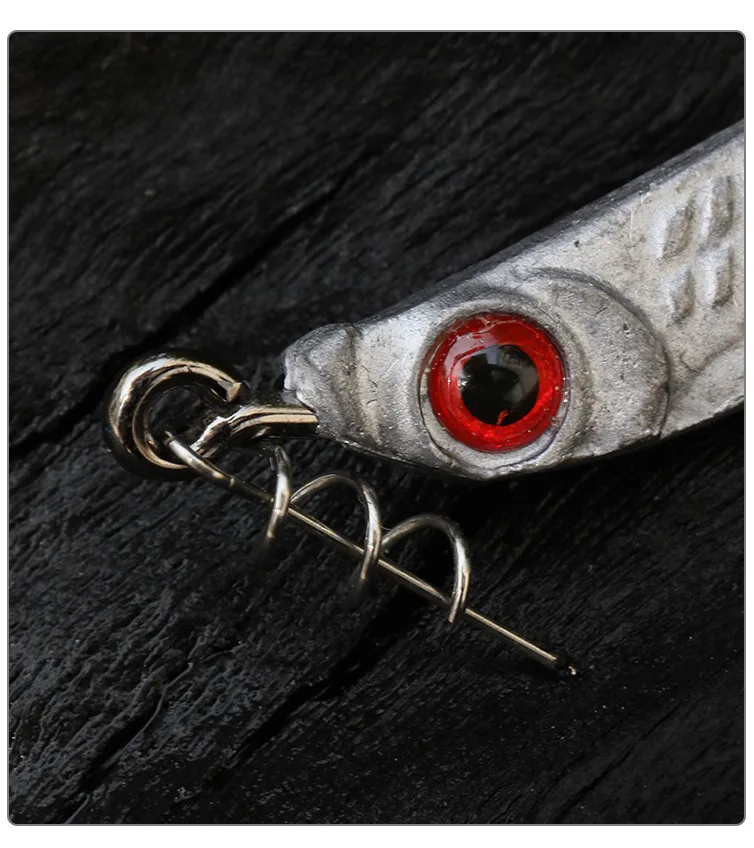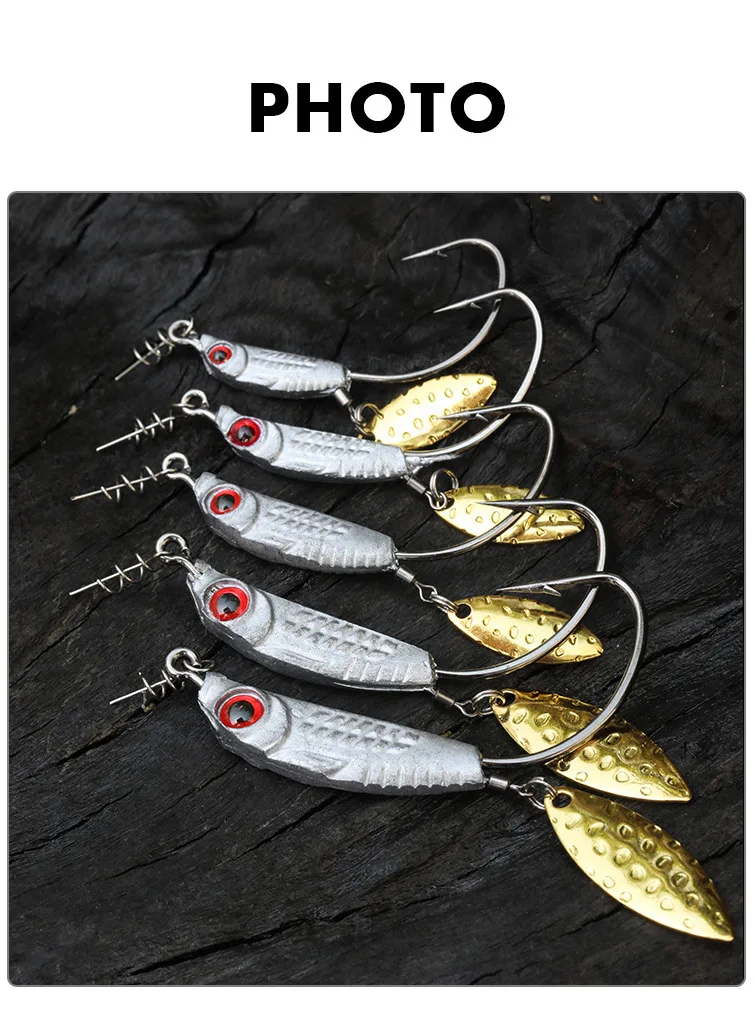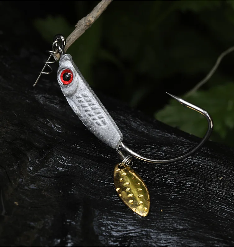 Anzuelos de plomo para pesca, anzuelos giratorios Wobbler de 2 piezas, anzuelo de manivela sin púas, cuchara giratoria VIB de Metal, anzuelo de gusano suave 3D leurre peche en mer flottant surface dur carnassier