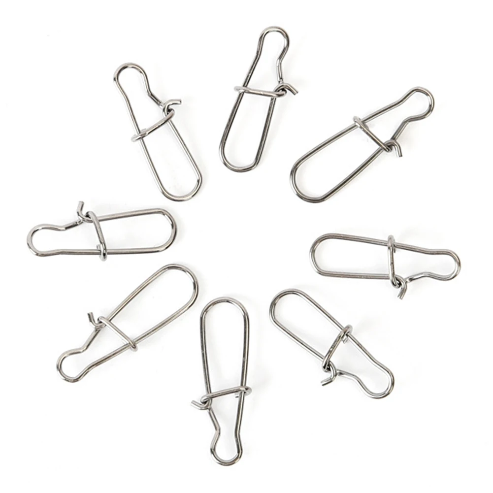 Conector de señuelo de seguridad giratorio de barril de pesca con anzuelos de acero inoxidable de 100 piezas