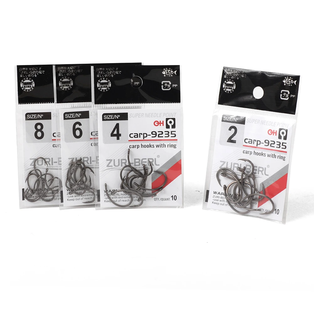 Anzuelos sin púas de acero inoxidable con revestimiento de 20 piezas, paquete de anzuelos de pesca de carpa con caja Original al por menor, 2, 4, 6, 8