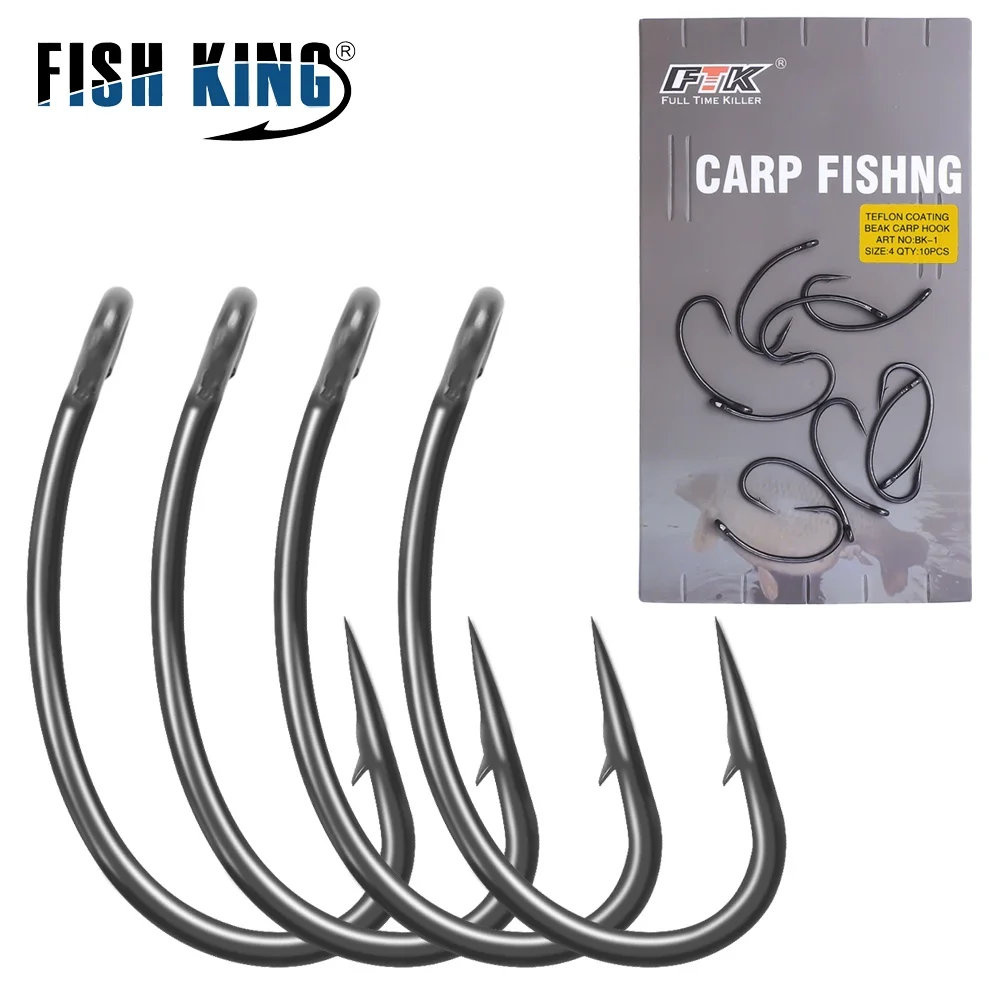 Anzuelos de púas con revestimiento de PTFE para pesca de carpa FISH KING 2 # 4 # 6 # 8 # Ganchos para aparejos de pelo Chod de calidad para accesorios de competición