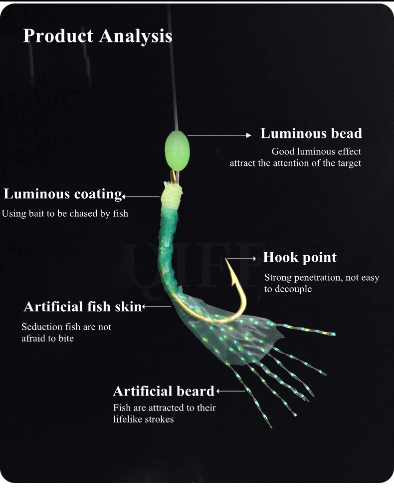 1.Punta de anzuelo afilada, fuerte poder de penetración, anzuelo de púas, apuñalamiento rápido, no es fácil quitar el anzuelo, baja tasa de carrera de peces.