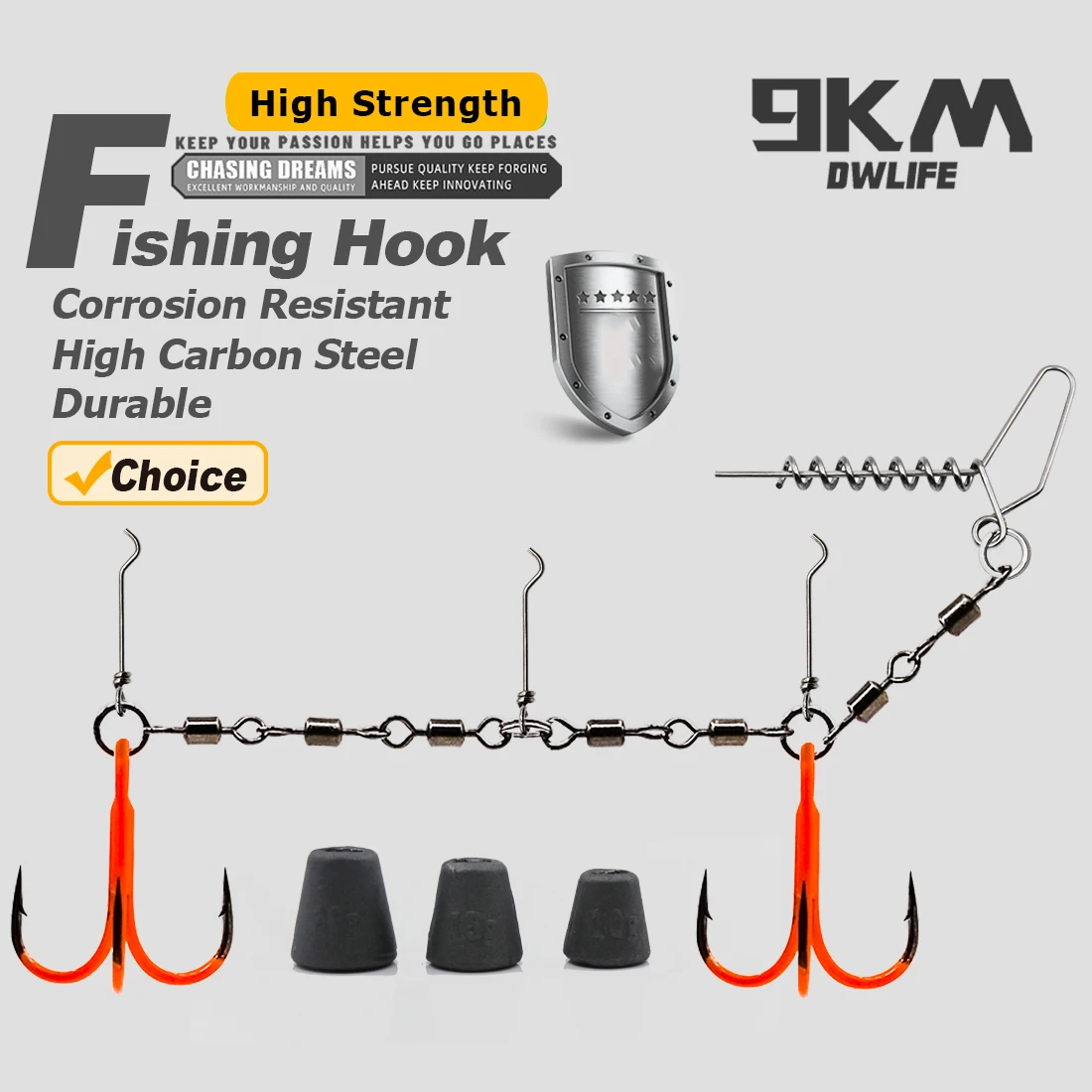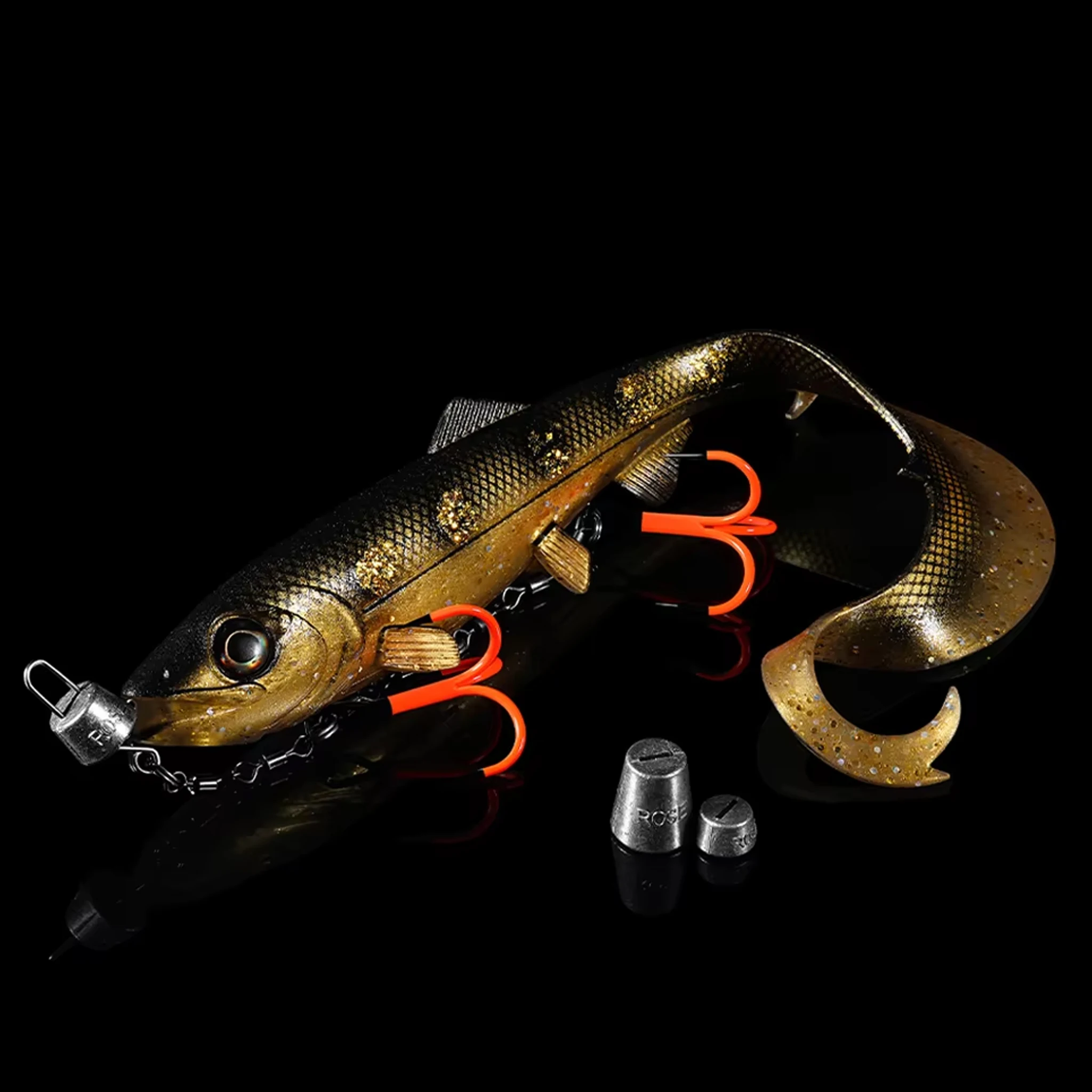 Lingo listo para montar con anzuelos, castañas y resortes, lo que le facilitará la pesca con señuelos blandos.