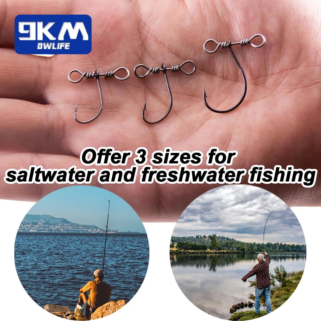 DISEÑO ÚNICO: El aparejo de tiro en línea y el eslabón giratorio permiten que el gancho gire 360 ° sin torcer la línea y permiten que el cebo se balancee libremente.