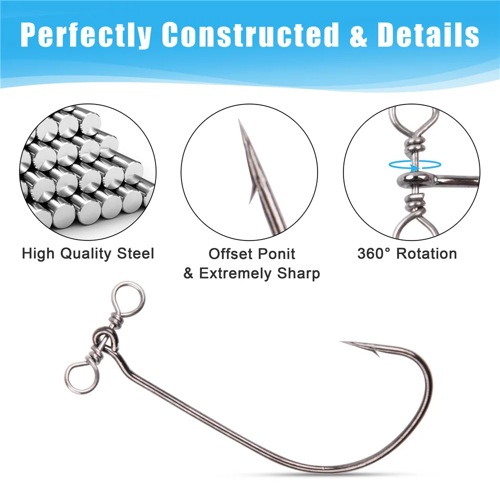 20 piezas de anzuelos de tiro en línea Drop Shot Rig y Swivels 2/0 3/0 4/0 anzuelo Drop Shot Rigs para Crappie Bass Fishing Kit