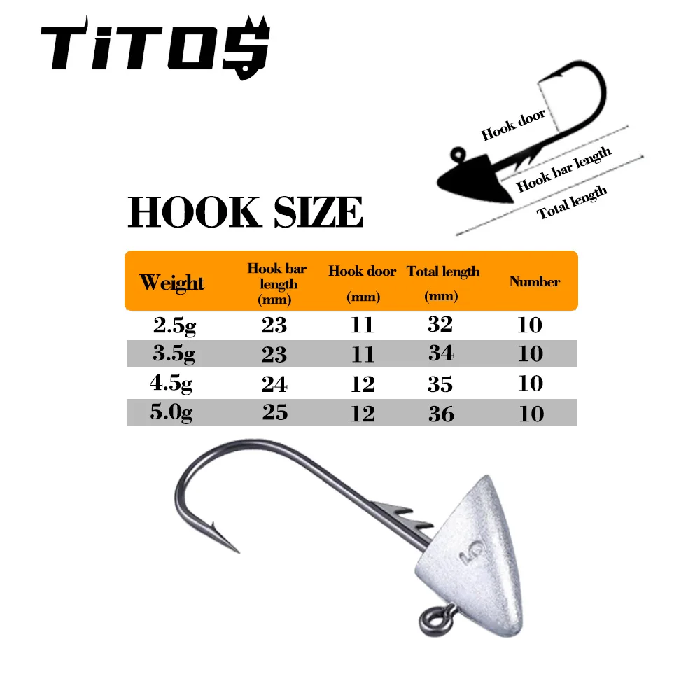 Anzuelos Triangulares para Pesca, Anzuelos con Cabeza de Plantilla, 2,5G, 3,5g, 4,5G, 5G, Anzuelos con Cabeza de Plantilla, Cebo Suave, Anzuelos de Pesca, 10 piezas