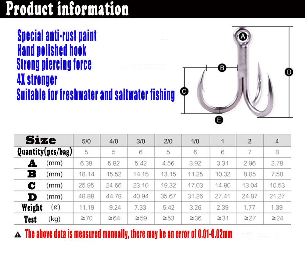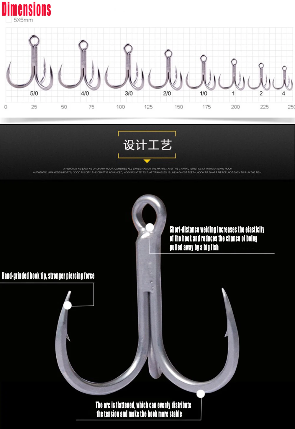 New Anti-Rust Coating 4X Hand-Grinded Super Strong Sharp fishing hook High Carbon Steel Treble Sea Hooks Saltwater Fishhook size4-5/0
