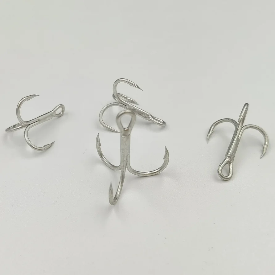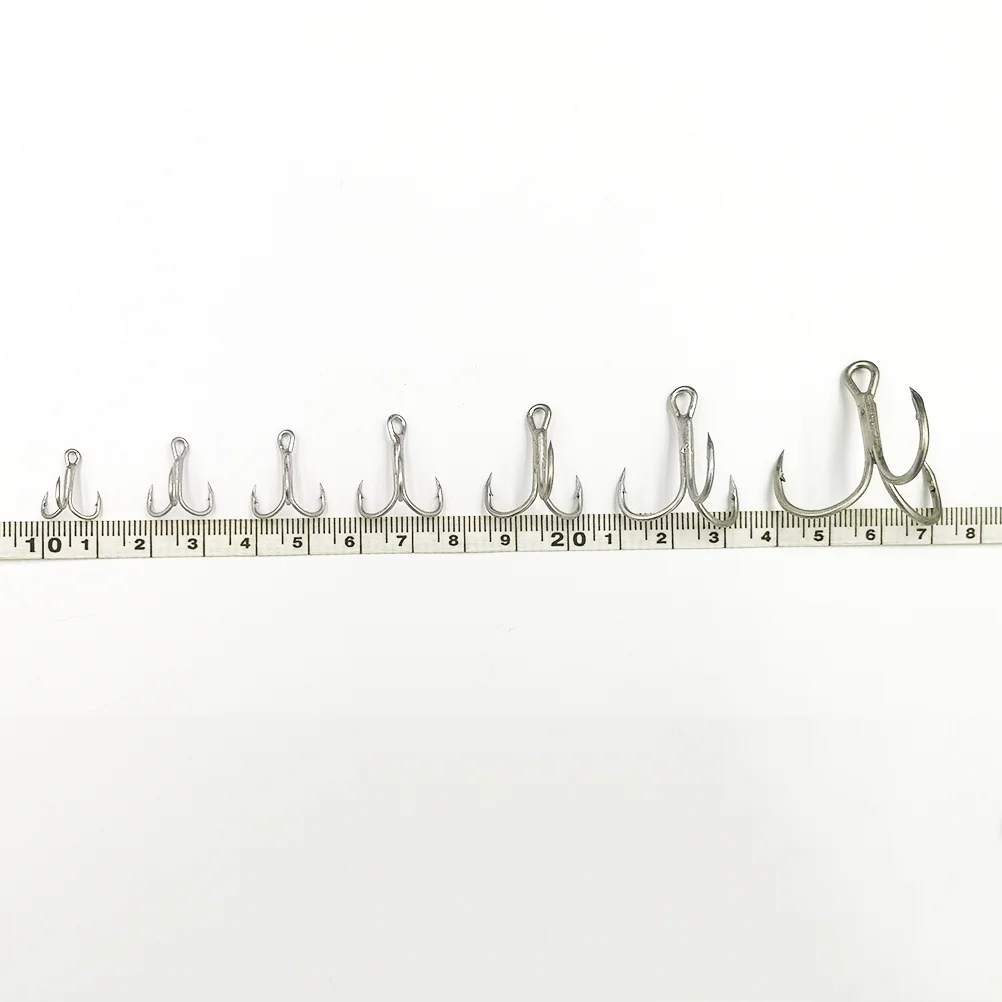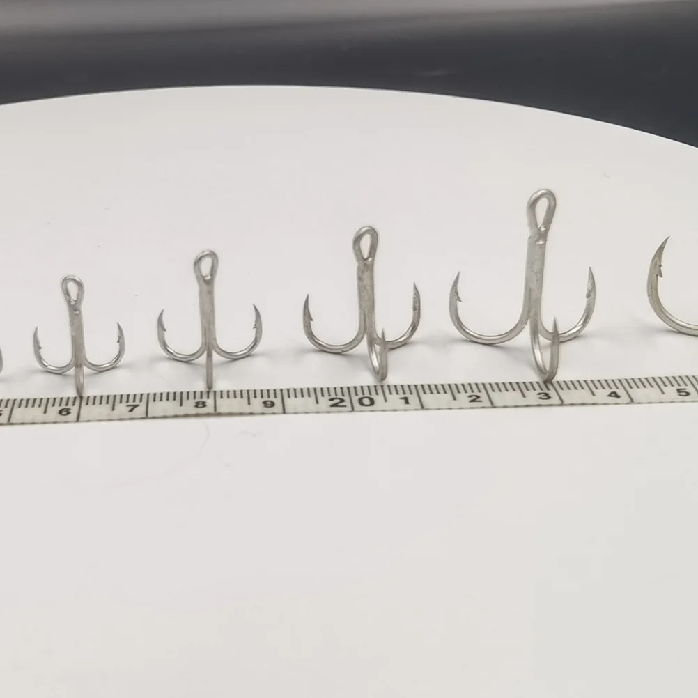 Anzuelos triples de acero al carbono, herramienta de pesca, anzuelo de púas, aparejos de pesca de mar, artículos de carpa, accesorios de Material, 5 unidades por lote