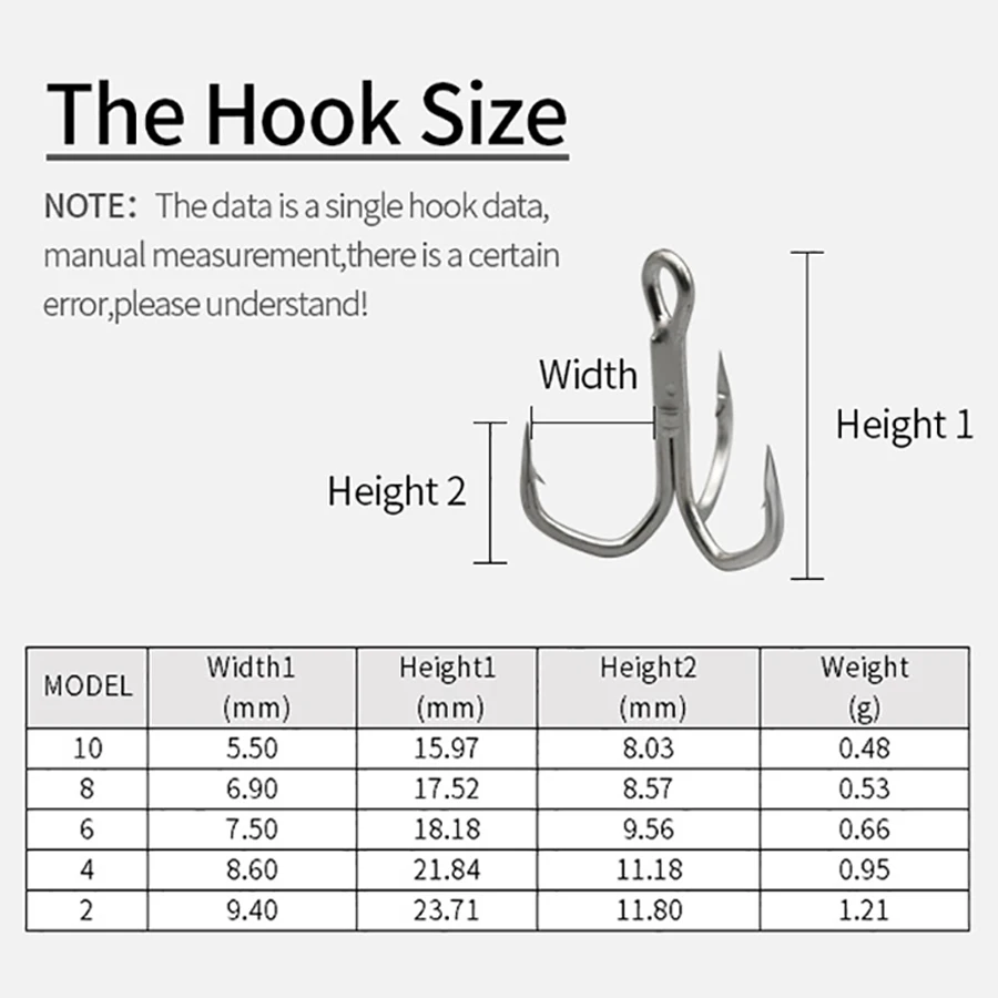 20 Uds. Anzuelos triples, anzuelos de pesca con punta de aguja, anzuelos de acero rico en carbono, anzuelos extra afilados para pesca en agua dulce y salada, 2# 4# 6# 8# 10#