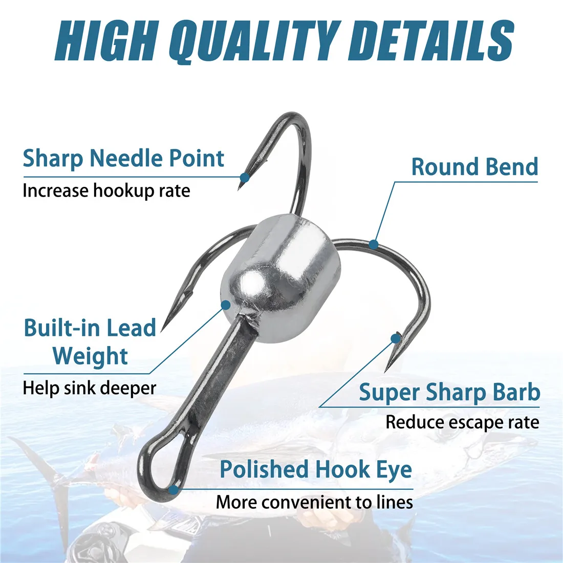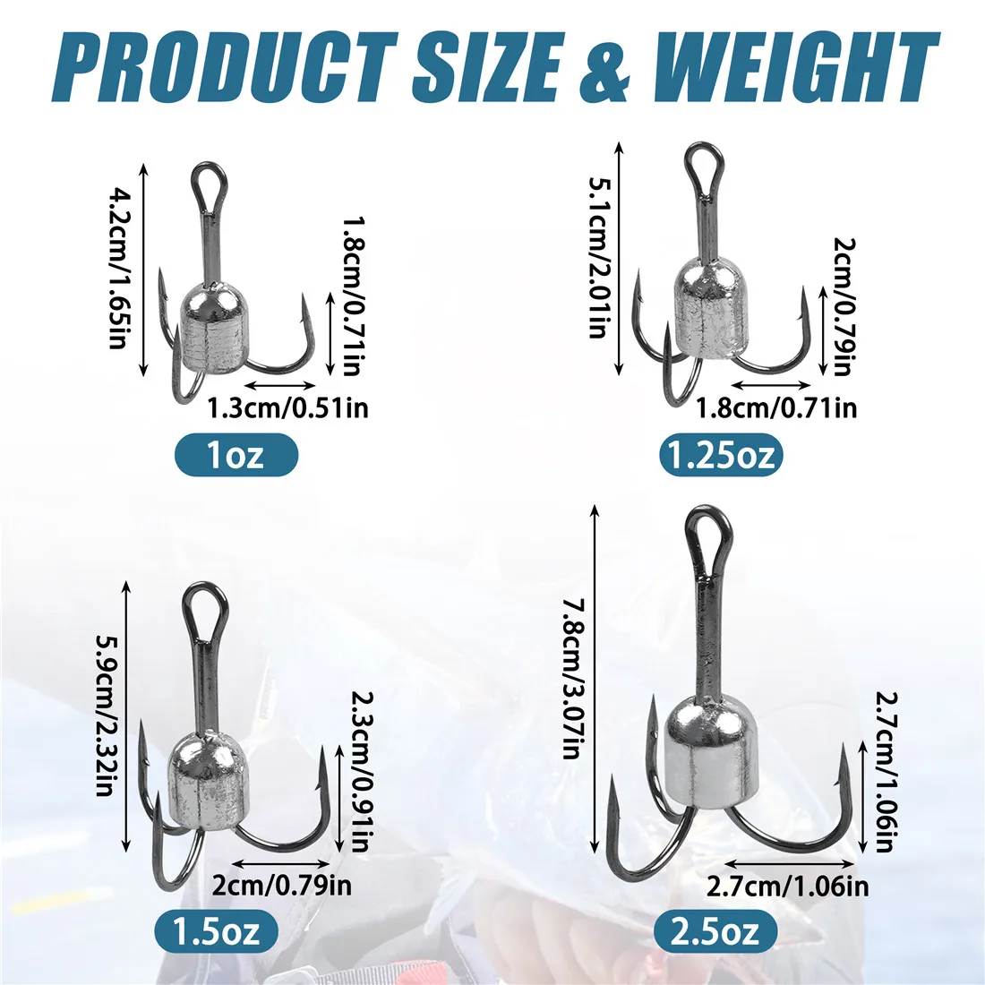 2. Tamaño 5/0(1OZ), 6/0 (1,25 OZ), 8/0 (1,5 OZ),10/0 (2,5 OZ) Anzuelos de enganche de diferentes pesos, más opciones, pesca en la playa para lubina, Anguila, pesca de calamar, perca en agua salada/agua dulce, etc.