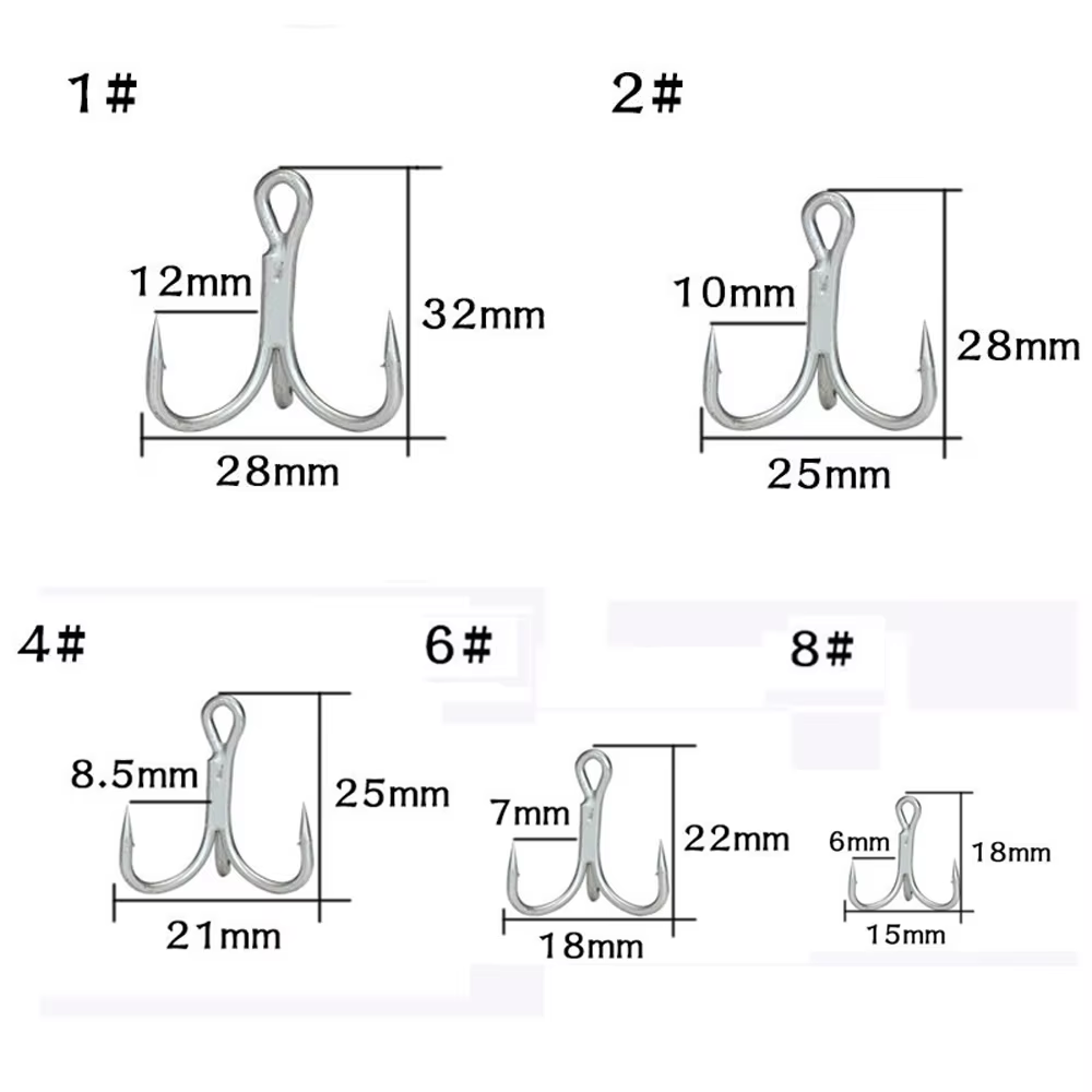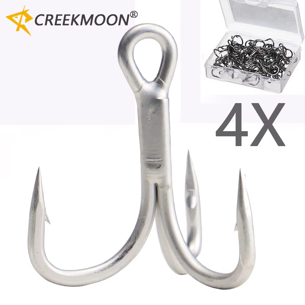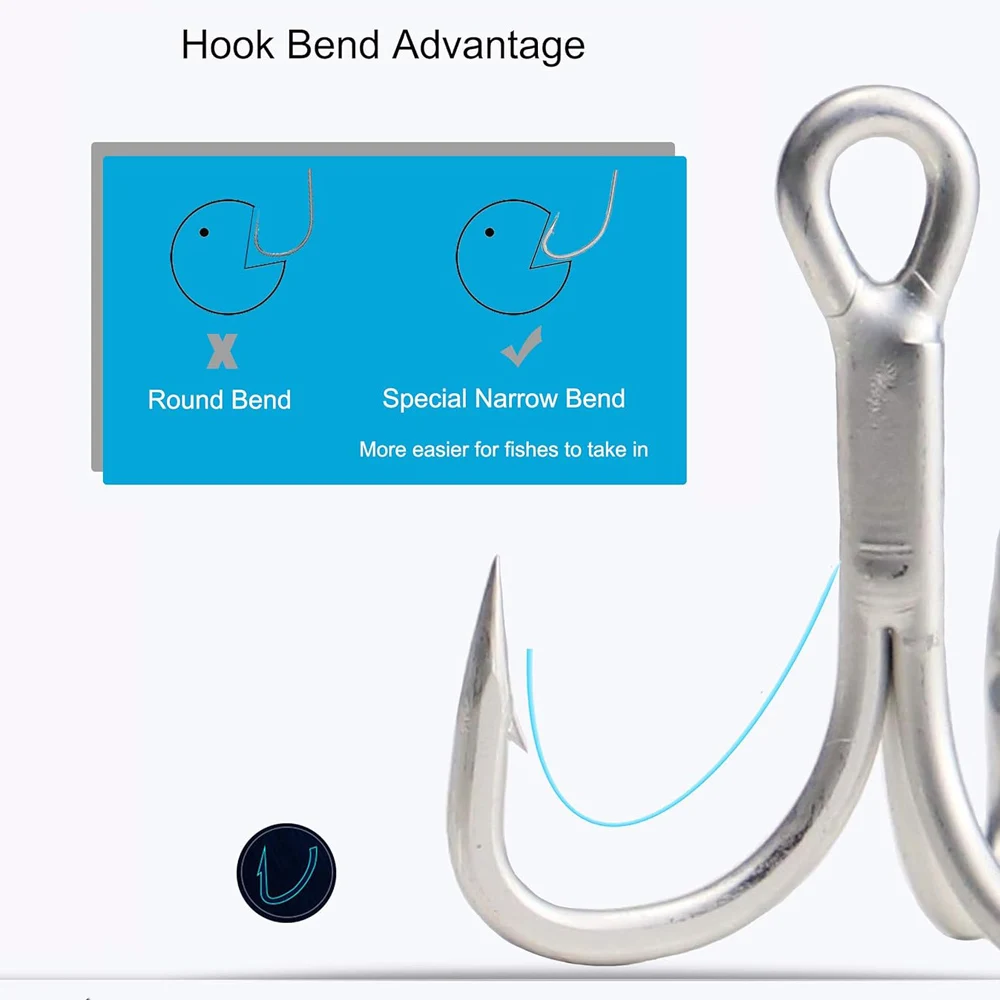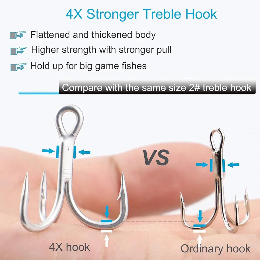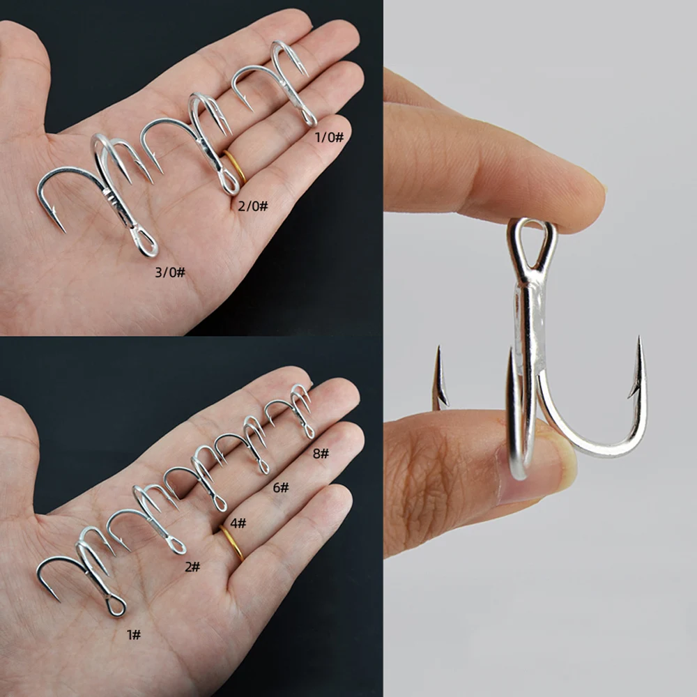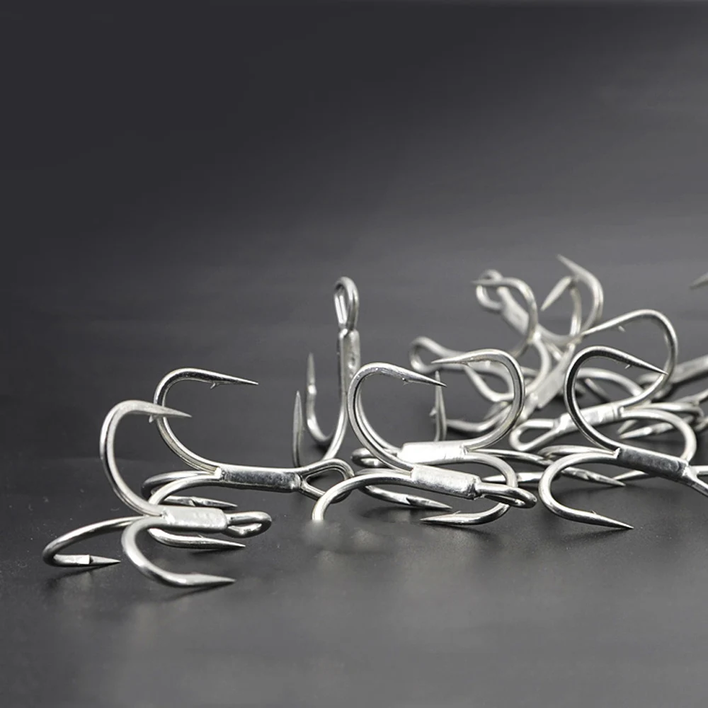 Anzuelos triples fuertes para agua salada, 20 unidades/caja, tamaño grande, 4X anzuelos de pesca triples para juego grande 1 # -8 # para trucha Bluefish Salmón Kingfish