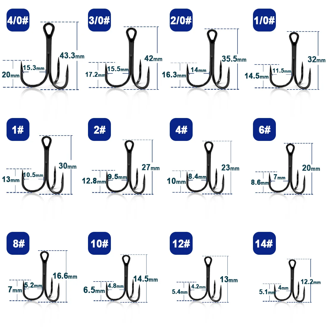 Anzuelos triples de pesca de 9KM, anzuelos de pesca de acero de alto carbono, anzuelos triples afilados en señuelos duros, accesorios de pesca de agua salada