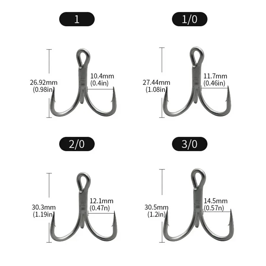 4x anzuelos triples fuertes 10 piezas 8 #6 #4 #2 #1 #1/0 2/0 3/0 anzuelos de pesca de agua salada anzuelos de acero de alto carbono anzuelos de alta resistencia aparejos de pesca