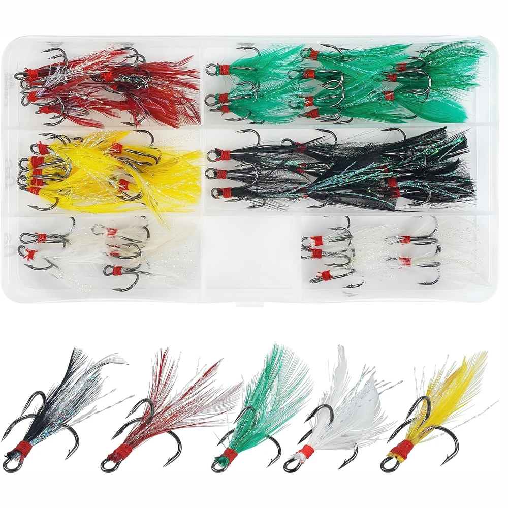 Gancho Flash con pluma para el cebo de cuchara, cebo duro y señuelo de pesca con mosca, etc.
