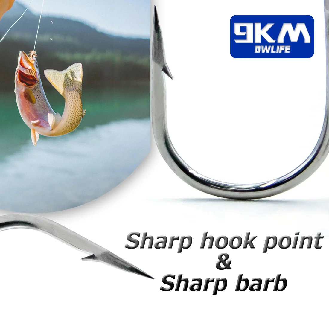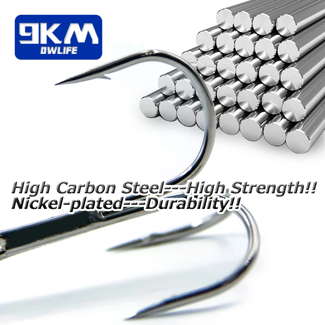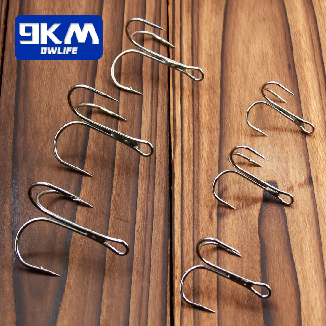 9KM te ofrecen 12 tamaños de anzuelo. Asegúrate de tener suficientes anzuelos triples para diferentes tamaños de señuelos duros.