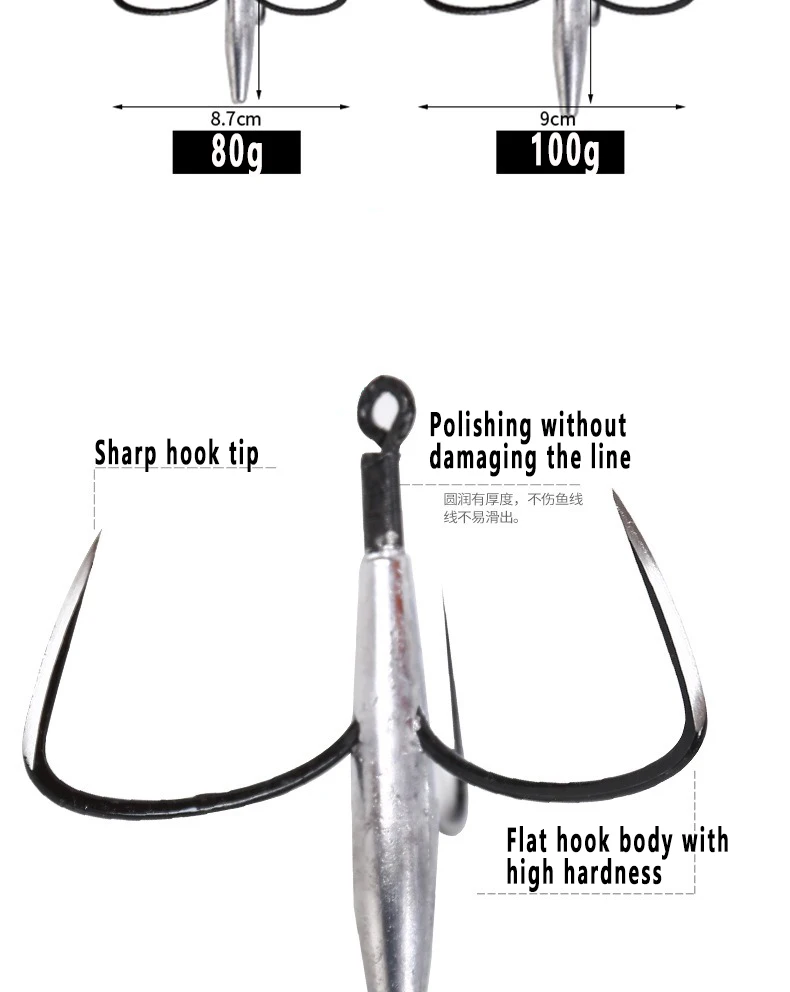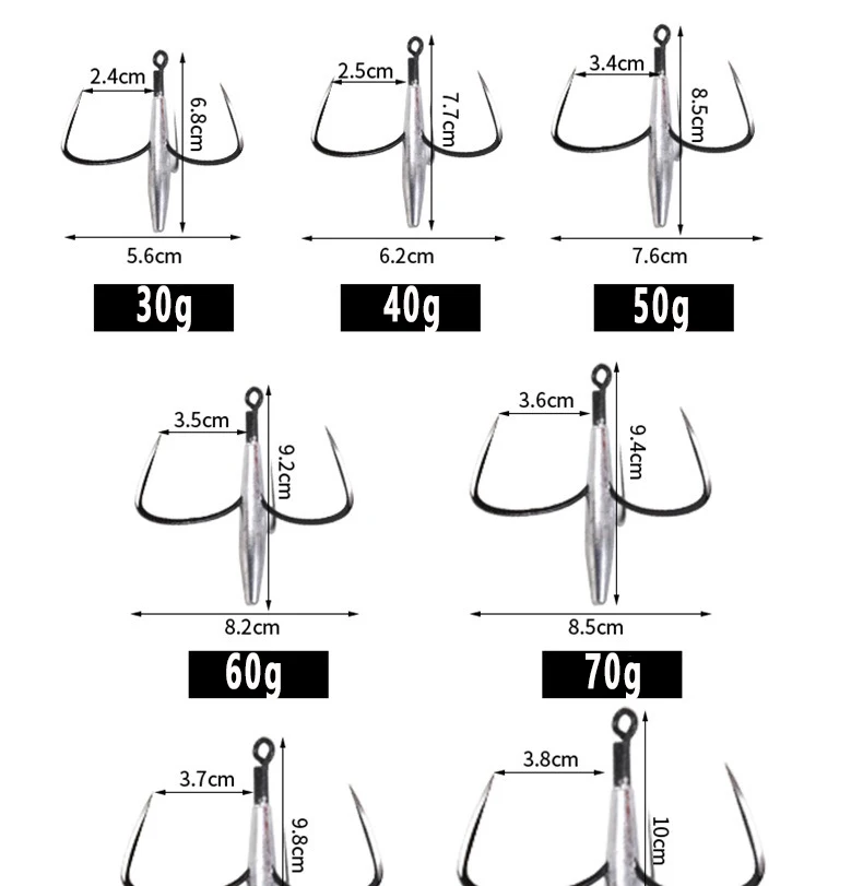 Anzuelos triples de pesca grandes afilados, 30g, 40g, 50g, 60g, 70g, con plomo, peso, anzuelo, aparejos de pesca, accesorios, 1 Uds.