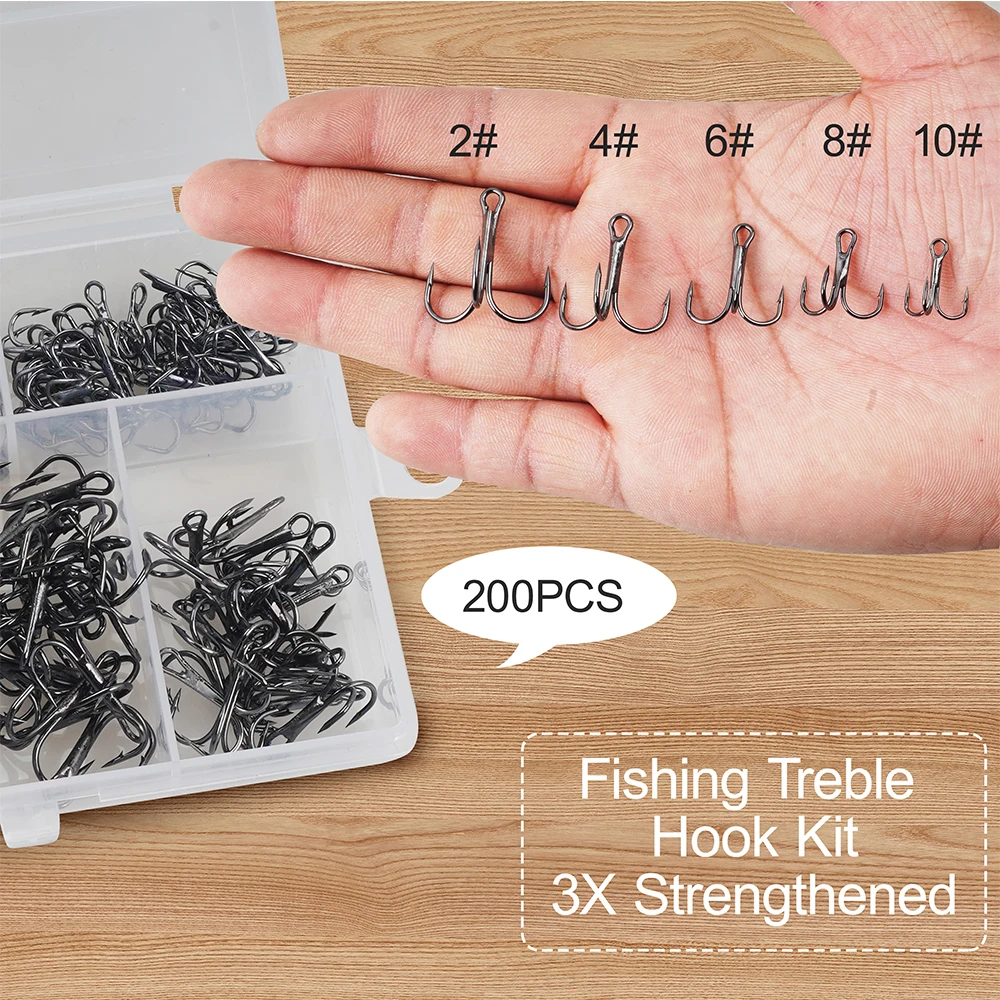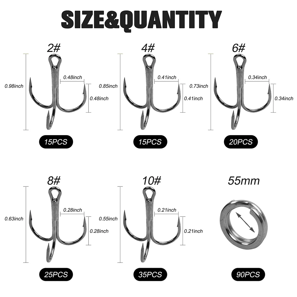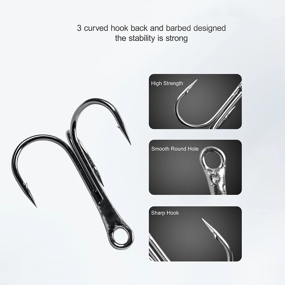 1. El cuerpo del gancho es duro y no se daña fácilmente. 3 anzuelos curvos con púas que no permiten que los peces se escapen.