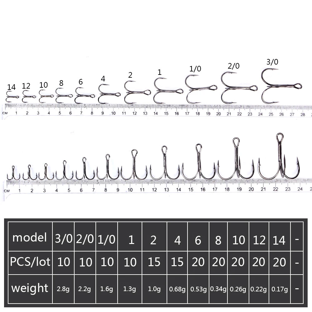 Anzuelos triples de pesca volcados de acero rico en carbono FTK 3/0 # -1 # 10 piezas 2 # -4 # 15 piezas 4 # -14 # Aparejos de pesca con triple anzuelo, señuelo duro de 20 piezas