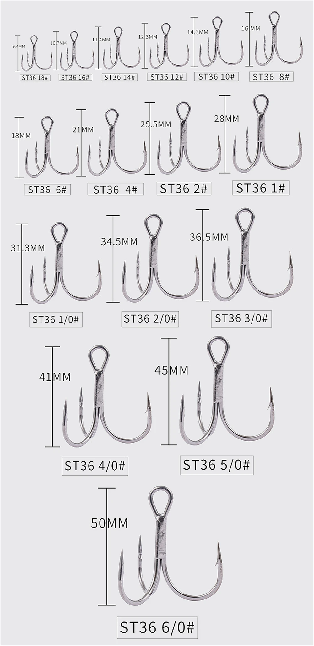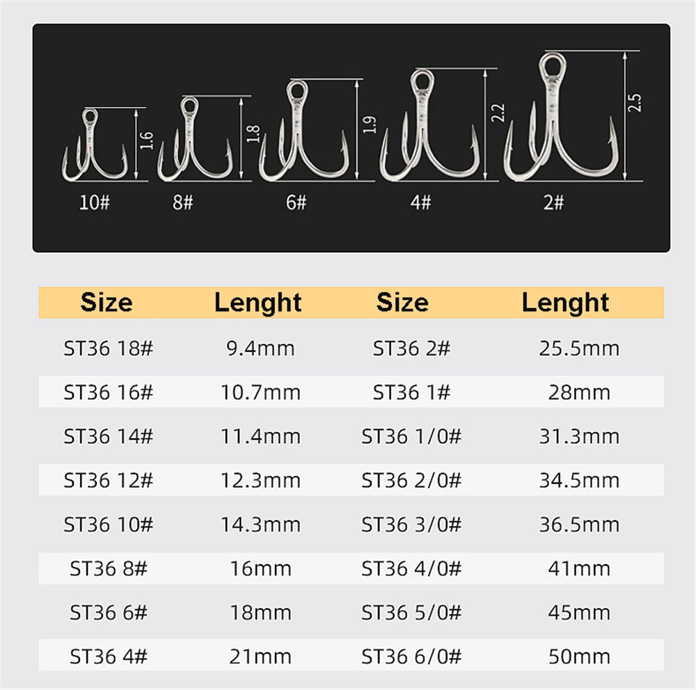 Anzuelos triples de piezas, equipo de Pesca de alta resistencia, de acero al carbono, para agua salada, 18 #-200 #, 3/0