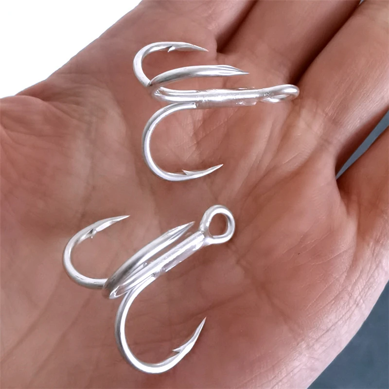 Anzuelos triples redondos de acero de alto carbono, anzuelos triples, anzuelos triples, anzuelos gruesos, accesorios para Pesca en agua salada, 50 piezas
