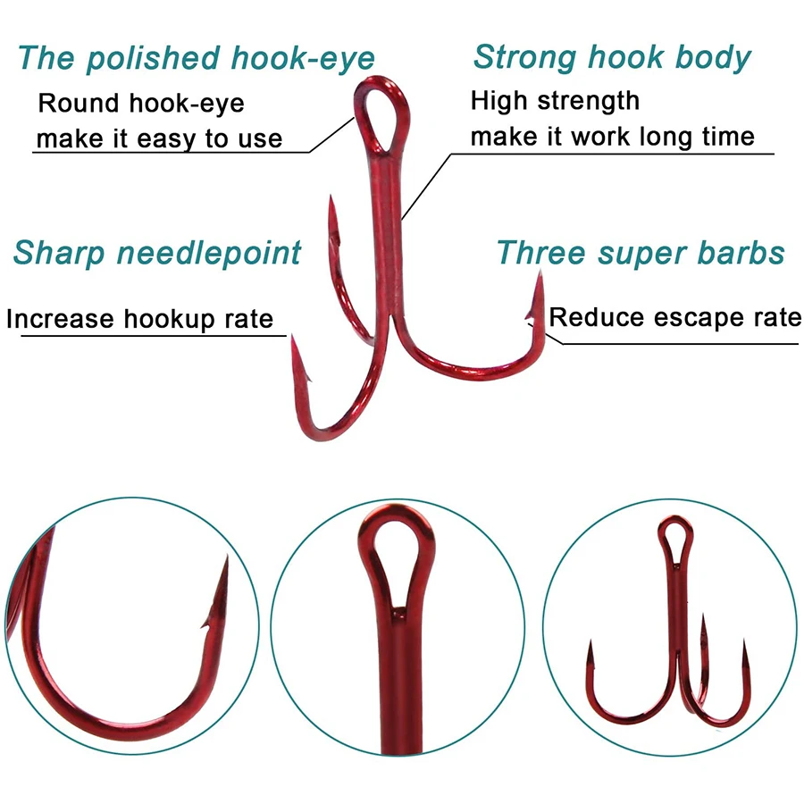 3. Puntas de anzuelo súper afiladas y de aguja, la tasa de enganche aumenta, el poder de penetración es maravilloso, es un anzuelo triple muy llamativo.