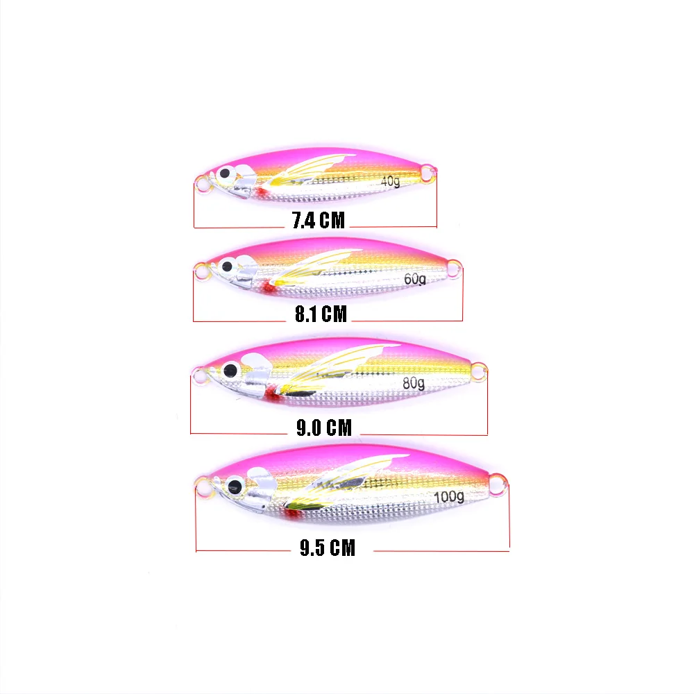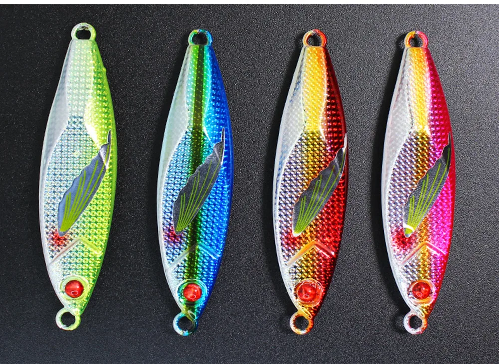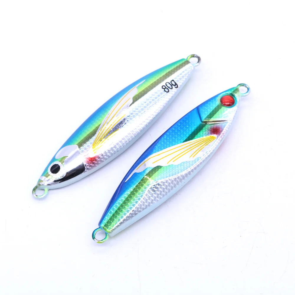 AOCLU-anzuelo de Metal lento, cebo Artificial de 40g, 60g, 80g, 100g, señuelo de aleta brillante, para aguas profundas, bote de pesca en roca, calidad japonesa