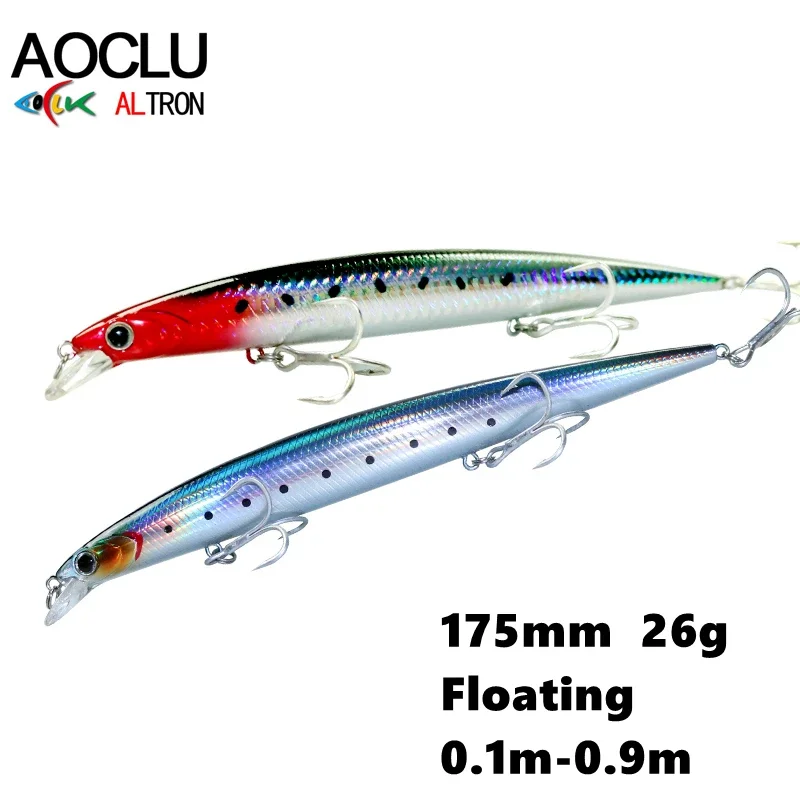 AOCLU-Cebo duro flotante Minnow, Jerkbait Wobbler, fácil de lanzar, señuelo de pesca, inmersión de transferencia de peso, profundidad 0,1 m-0,9 M, 175mm, 26g