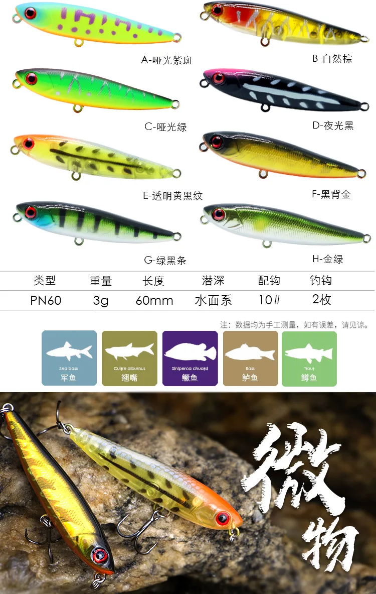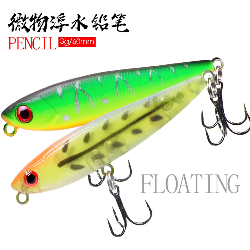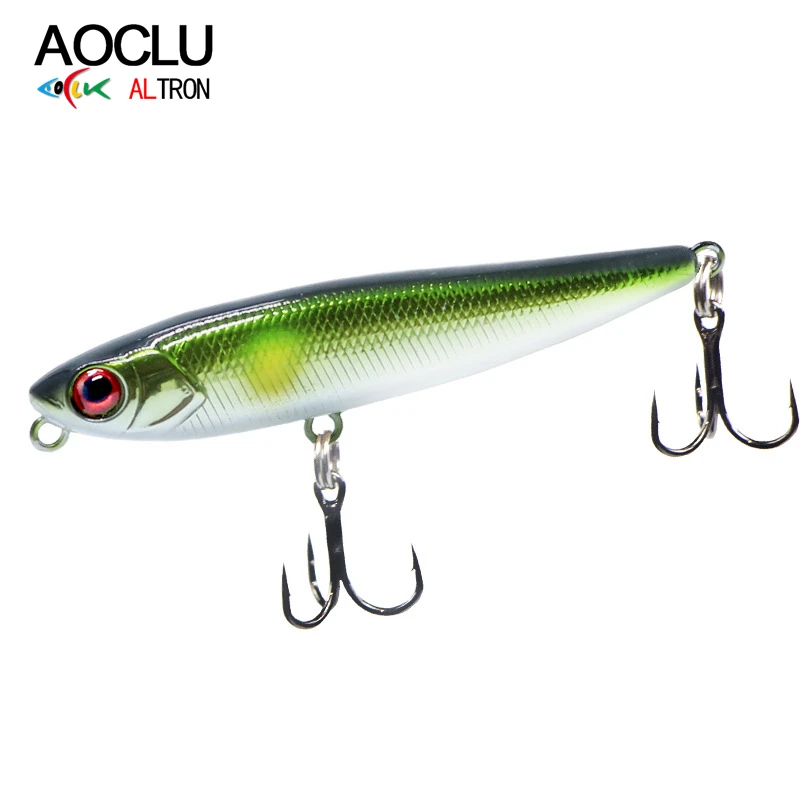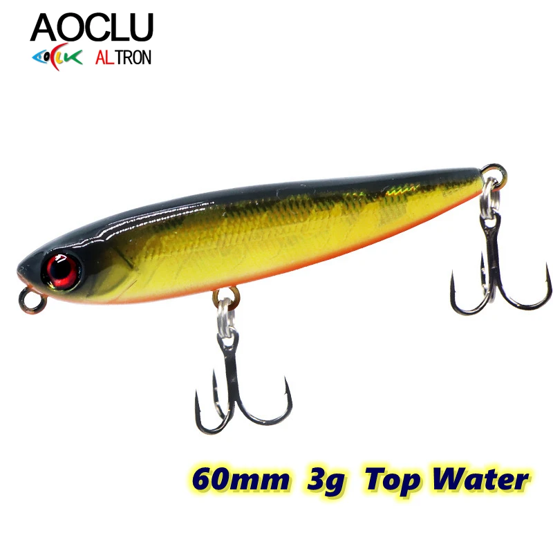 AOCLU-Cebo de lápiz flotante, Wobbler duro, Swimmer de superficie Topwater, anzuelos triples de lámina recargable, calidad japonesa, 60mm, 3G