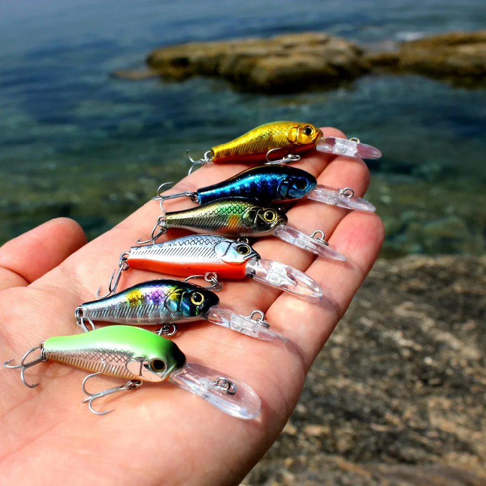 AOCLU-Mini señuelo flotante para pesca, cebo duro de 35cm y 2,4g para buceo profundo de 1,2 m, Minnow Shad, lubina, trucha, agua salada, ganchos 14 # VMC