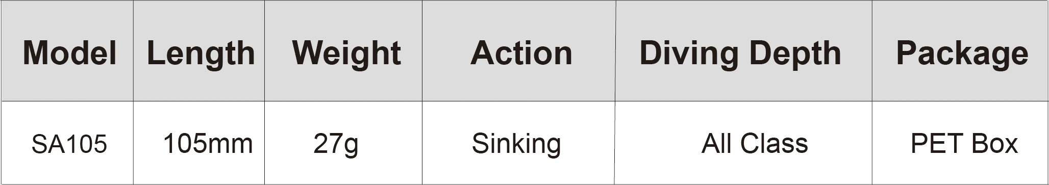 ØThis is a sinking pencil bait you will use when you wish to catch those fish who are just not prepared to attack in the surface layers.