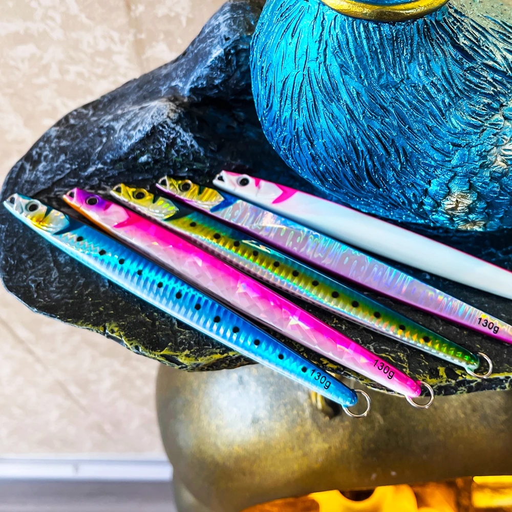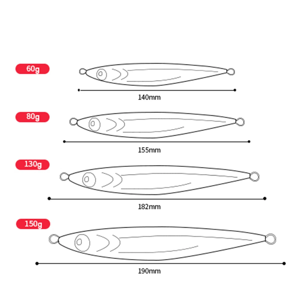 AOCLU Plantilla de Metal con forma de sardina, 60g, 80g, 130g, 150g, brillo UV luminoso, sin gancho, cebo duro, señuelos de palo de hundimiento, pesca de lubina en barco