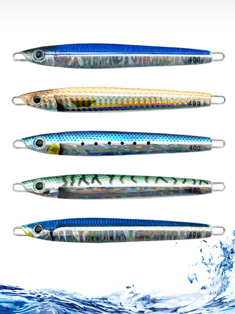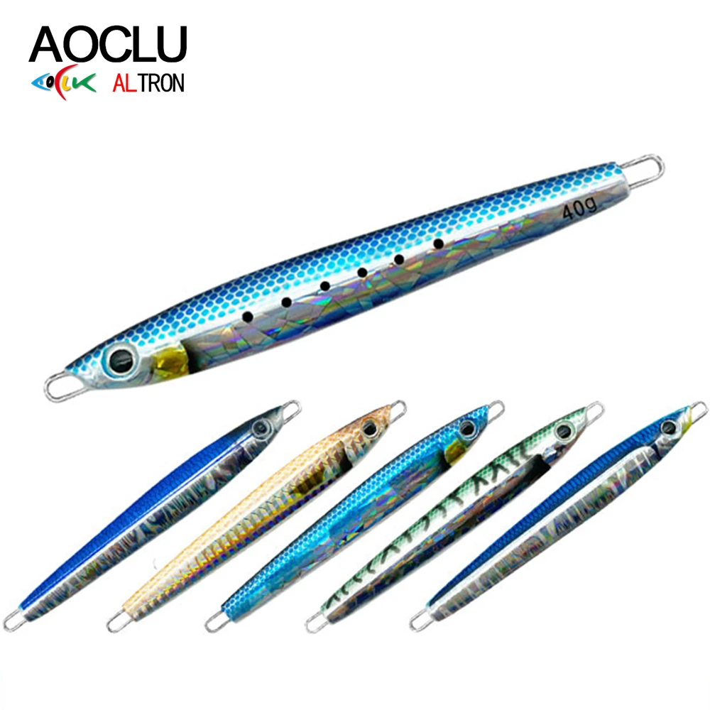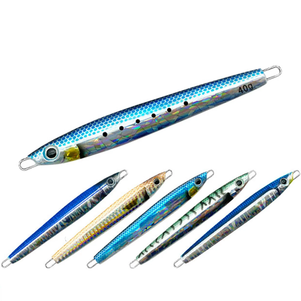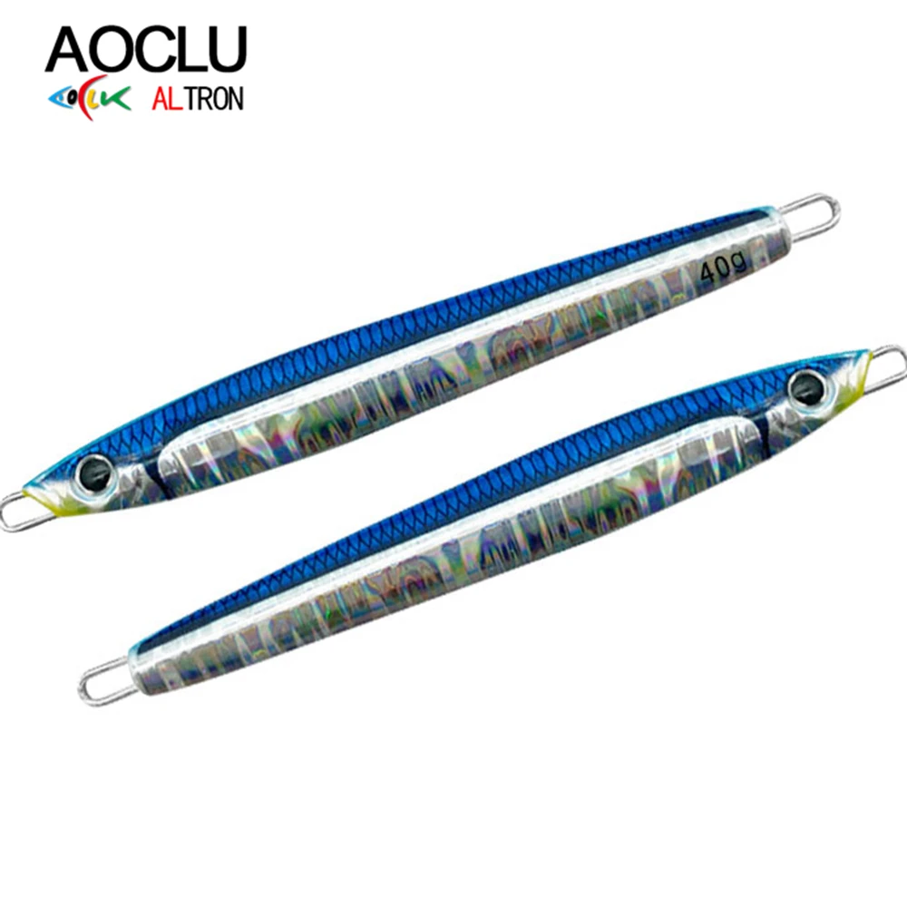 AOCLU Plantilla de Metal con forma de sardina Jigging, señuelos de palo de hundimiento de cebo duro, brillo UV luminoso, sin gancho, 40g, 60g, 80g, 100g