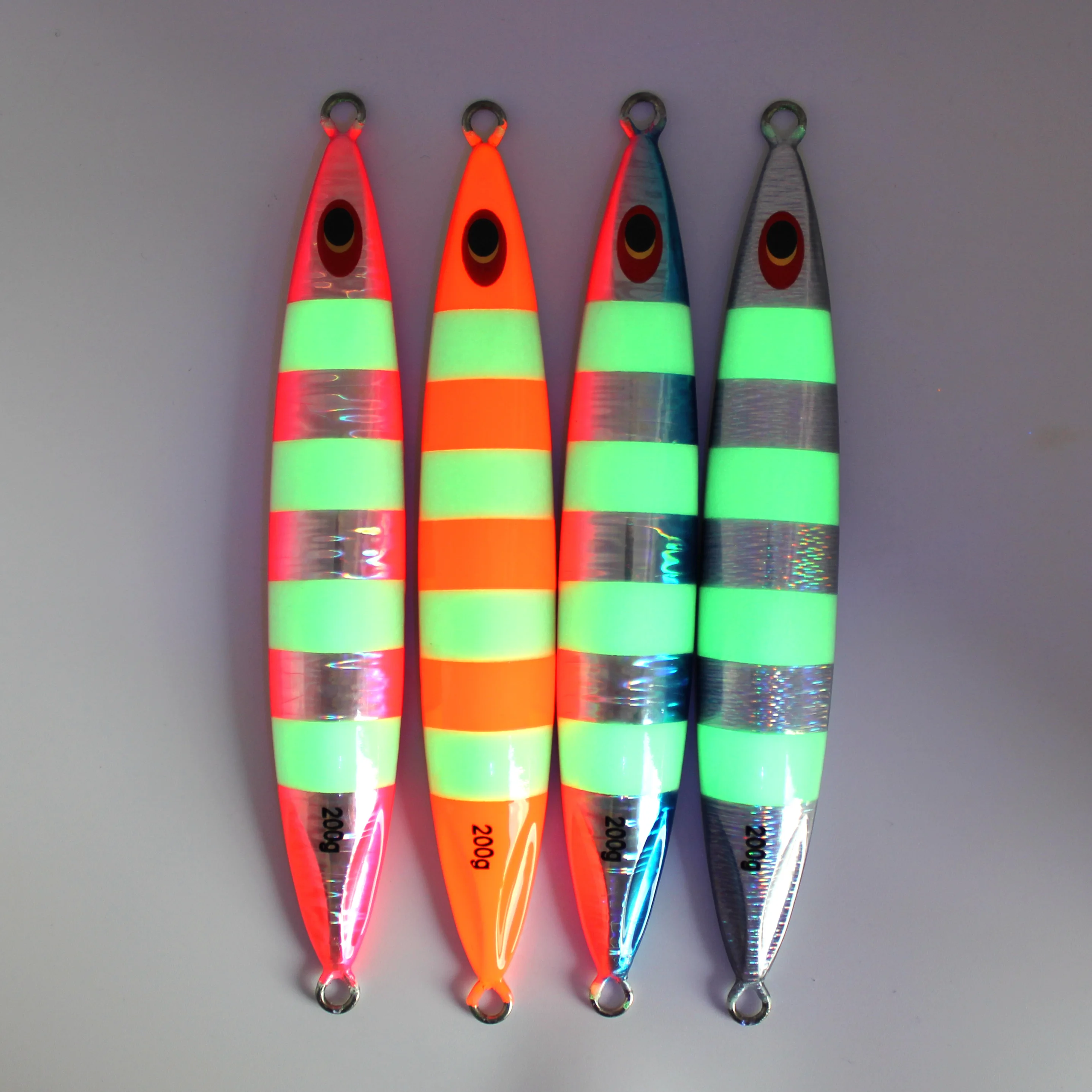 AOCLU-Plantilla de Metal lenta para mar profundo, cebo duro que se hunde, brillante señuelo UV, cebra luminosa para pesca de atún, Grouper, lubina, 200g, 300g