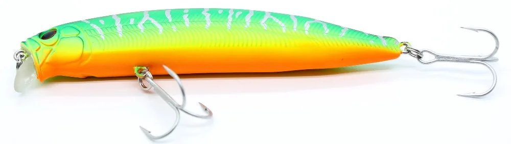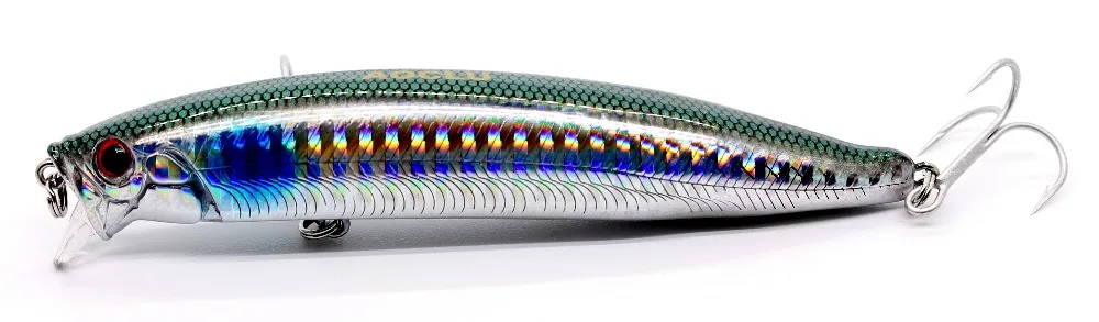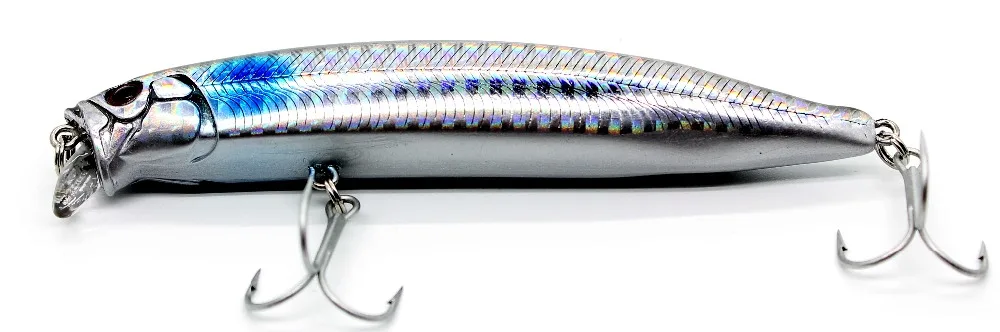 La forma aerodinámica y el equilibrio de peso permiten lanzamientos largos y rápidos y detener e ir a recuperar. Es muy adecuado para atún, pescado azul, barracuda y lubina.
